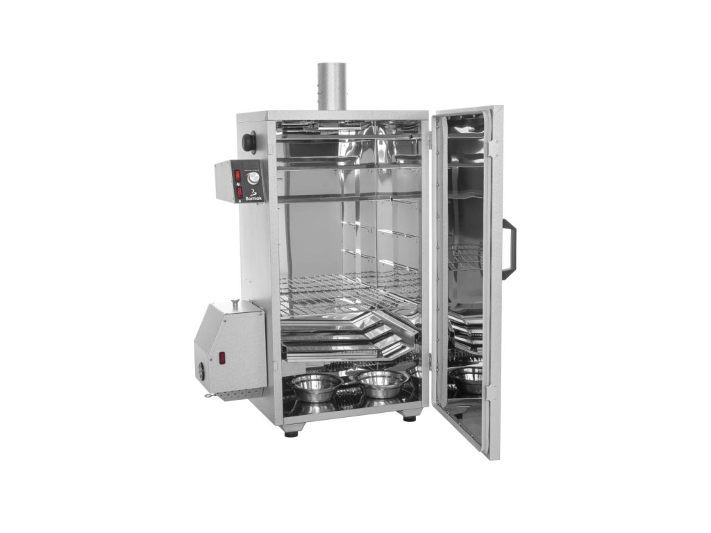 Vnitřek udírny je vyroben z potravinářské nerezové oceli. Zařízení umožňuje uzení studeným kouřem (s adaptérem) a uzení za tepla v rozmezí 45°C - 120°C. S kapacitou 70 litrů pojme až 10 kg surovin na 6 úrovních.