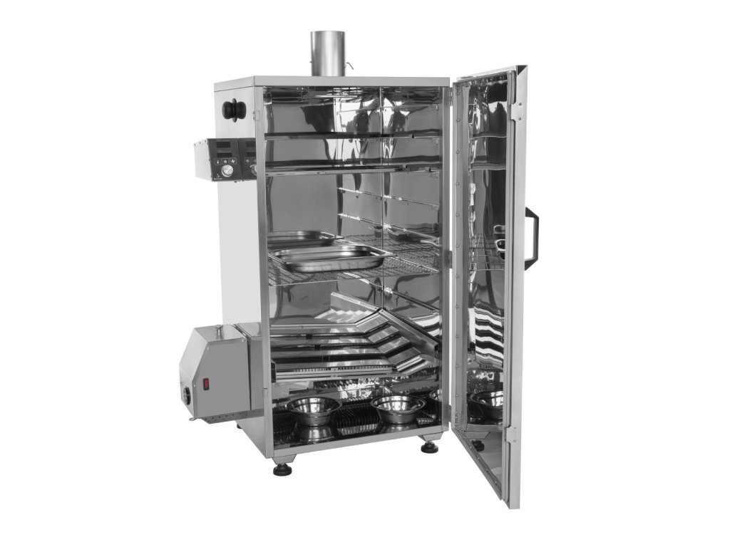 Udírna je vyrobena z leštěného nerezového plechu, který splňuje vysoké hygienické standardy. Zařízení umožňuje uzení studeným kouřem (s adaptérem) i uzení za tepla v rozmezí 45 °C – 150 °C. S kapacitou 150 litrů a 7 úrovněmi pojme až 20 kg masa.