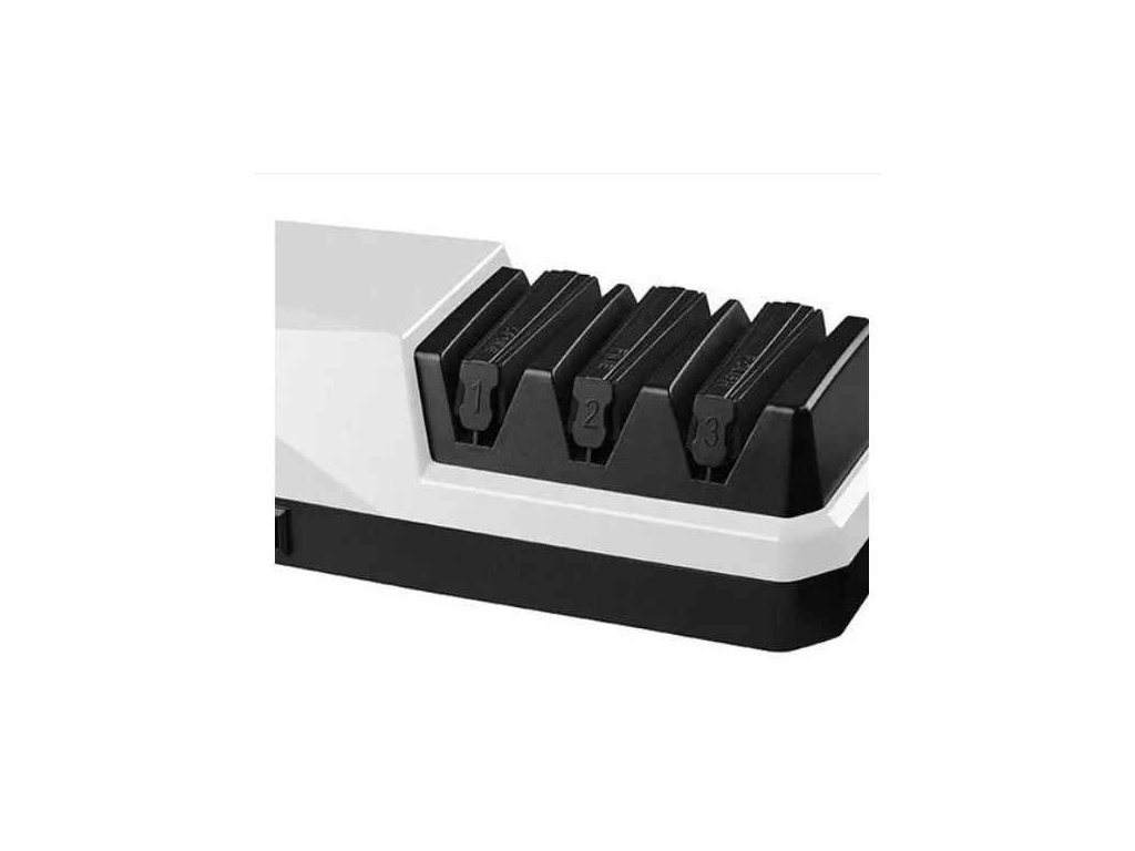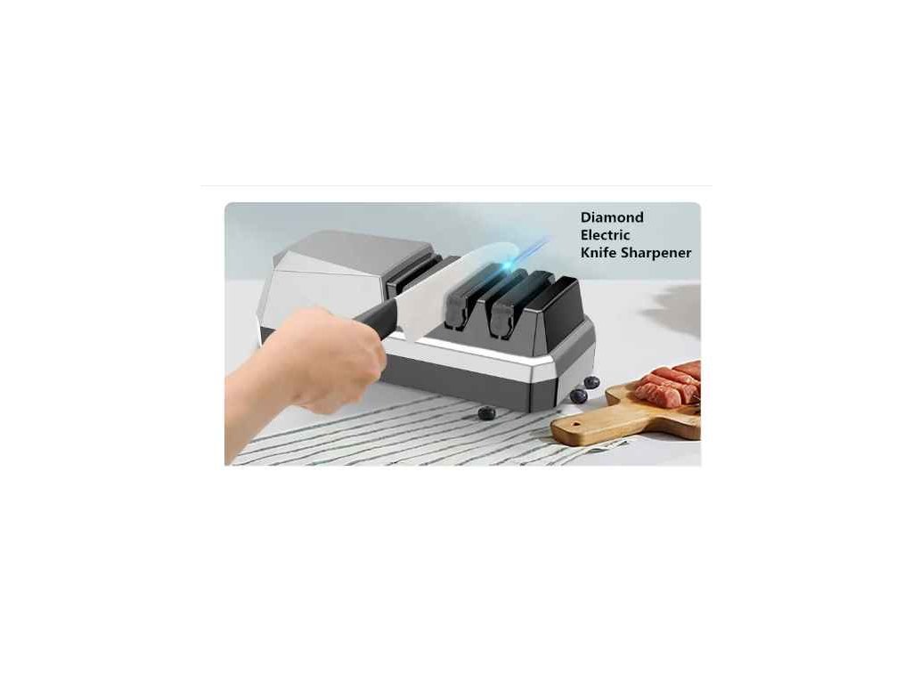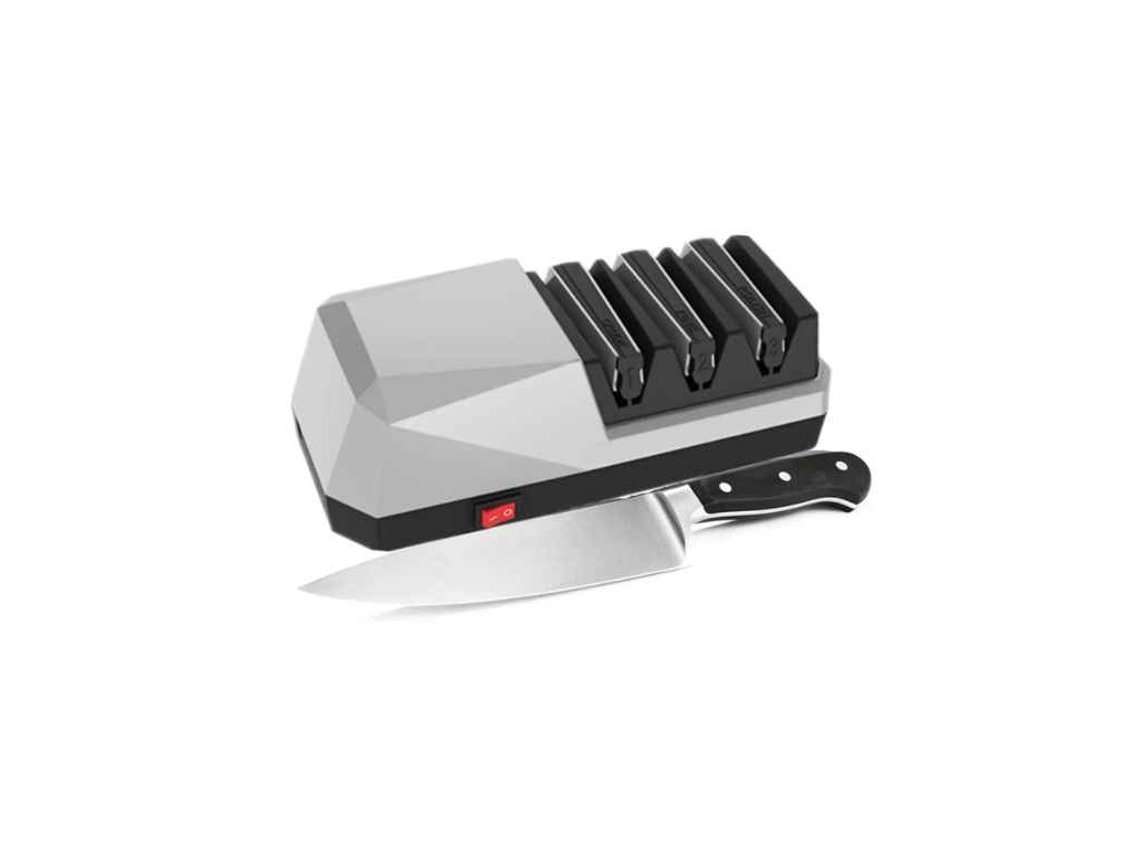 Elektrický diamantový brousek je určený k broušení ocelových i keramických nožů. 3 stupňový brousek umožňující hrubé i jemné broušení a leštění. Správný úhel a rovnoměrný tlak vytvarují perfektní ostří. Brusná hlava je vyrobena ze speciálního materiálu, který chrání nůž po stranách před poškrábáním při broušení. Obsahuje zásobník na nečistoty vzniklé broušením a snadno se tak čistí.