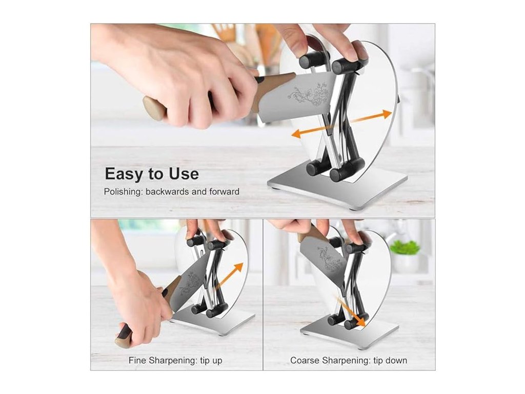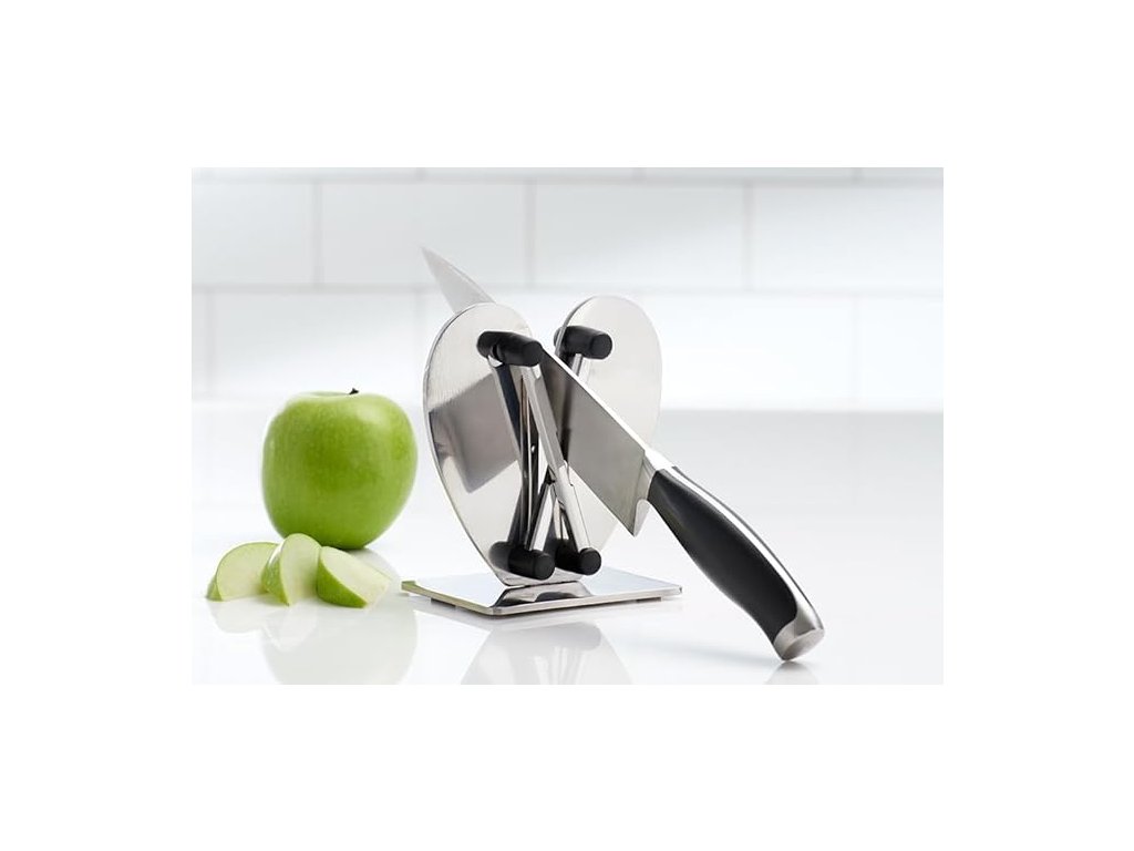 Profesionální brousek na nože poskytuje tři základní funkce pro vaše kovové kuchyňské nože: honování, ostření a leštění. Funguje během několika sekund prakticky na každém kovovém noži ve vaší zásuvce, včetně japonských nožů, kuchařských nožů, zoubkovaných nožů, vykosťovacích nožů, krájecích nožů a sekáčků. Vyrobeno z odolné nerezové oceli.