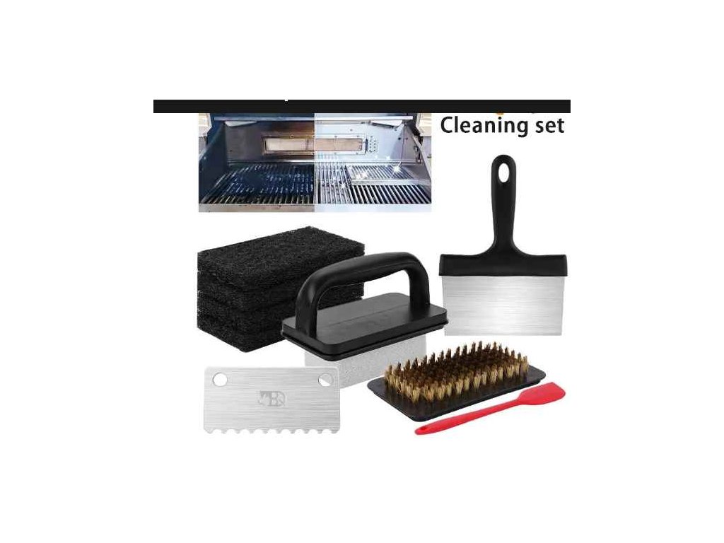Tato kompaktní sada grilovacích nástrojů je ideální pro přípravu vašich oblíbených pokrmů na grilu. Obsahuje širokou škálu nástrojů, včetně rukojetí pro houbičky, pemzy a kartáč, stejně jako rukojetí špachtle pro špachtli a škrabátko. K tomu přidáváme plastovou škrabku pro snadné čištění a údržbu grilu.