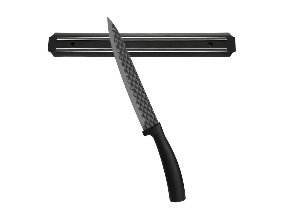 Magnetický držák nožů na zeď představuje praktický a efektivní způsob, jak ukládat nože a udržovat je neustále po ruce. Tento držák je vyroben z kvalitní oceli a je vybaven dvojitou řadou silných magnetů, které zajistí bezpečné uchycení vašich nástrojů bez rizika pádu.