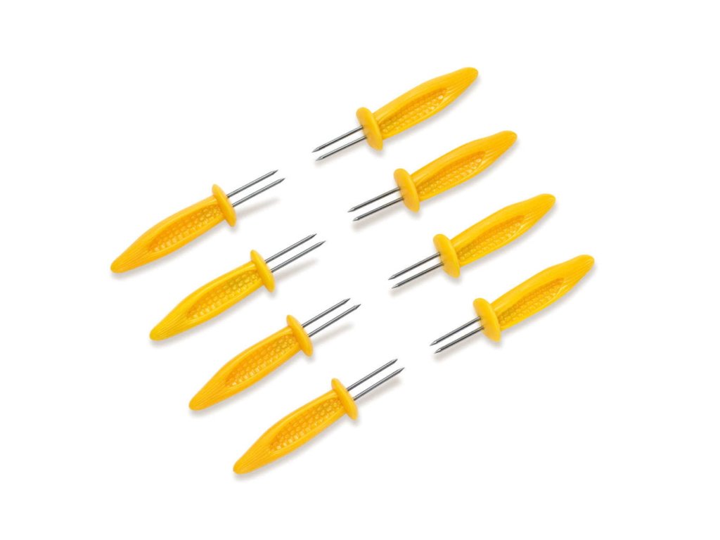 Vařená i grilovaná kukuřice se musí podávat vždy horká. Abyste si nespálili prsty, použijte praktické držáky na kukuřici. Na každý konec zapíchnete jeden držák a můžete se pustit do jídla.