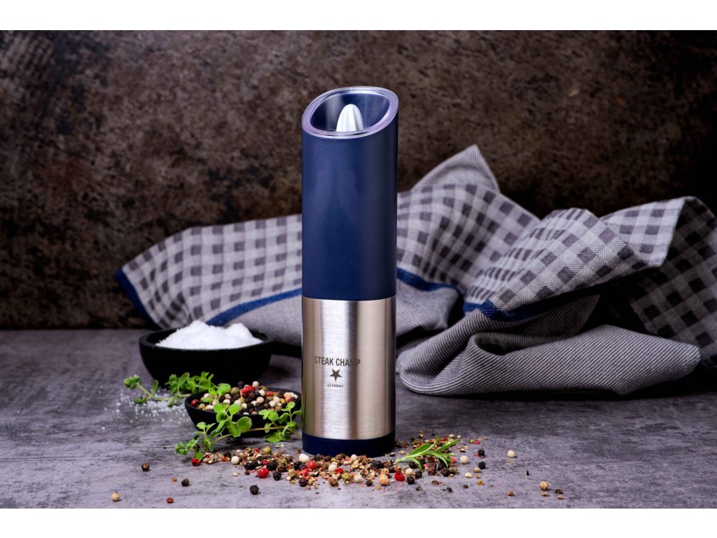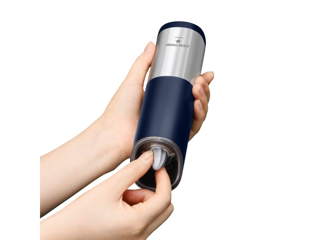 Automatický elektrický mlýnek na pepř SteakChamp vám naservíruje čerstvě mletý pepř při každém otočení. Ochuťte omáčku, maso či zeleninu čerstvě mletým pepřem pouhým otočením mlýnku vzhůru nohama.