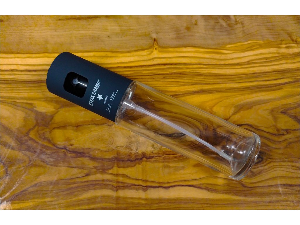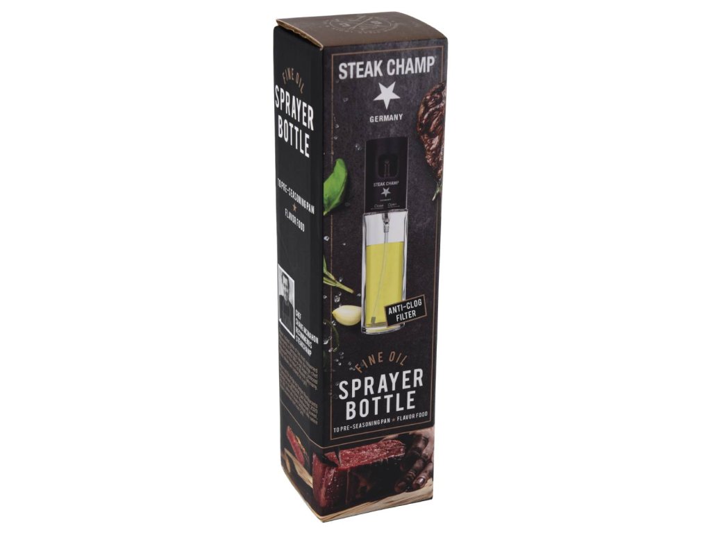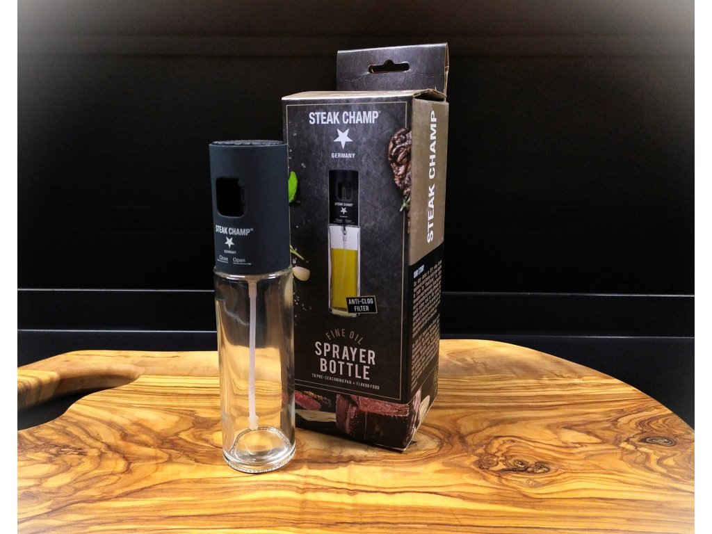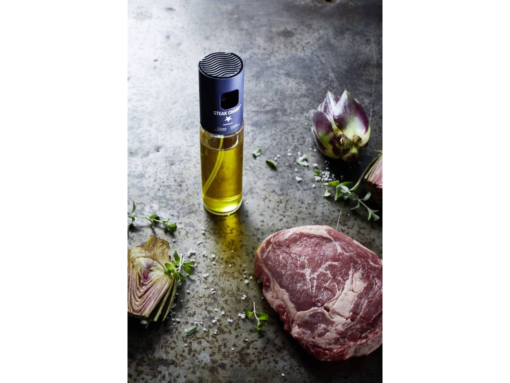 Rozprašovač oleje SteakChamp vám usnadní práci při potírání steaků, dochucení salátu nebo vymazávání pánve na lívance. Už nemusíte přelívat olej do mističky a používat mašlovačku.