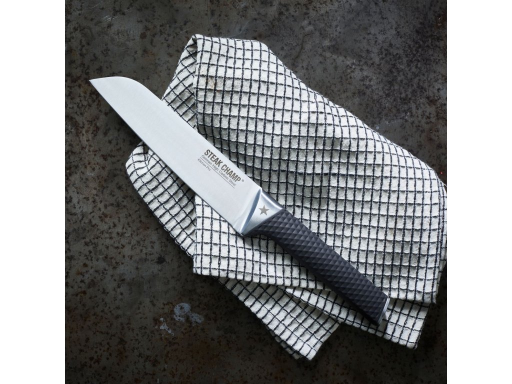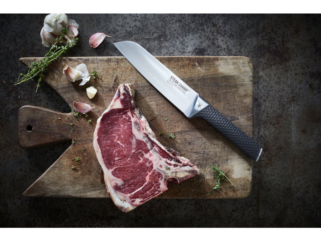 Kuchařský nůž SteakChamp se kterým uříznete dokonalý steak, nasekáte bylinky do marinády nebo nakrájíte rajčata na salát.