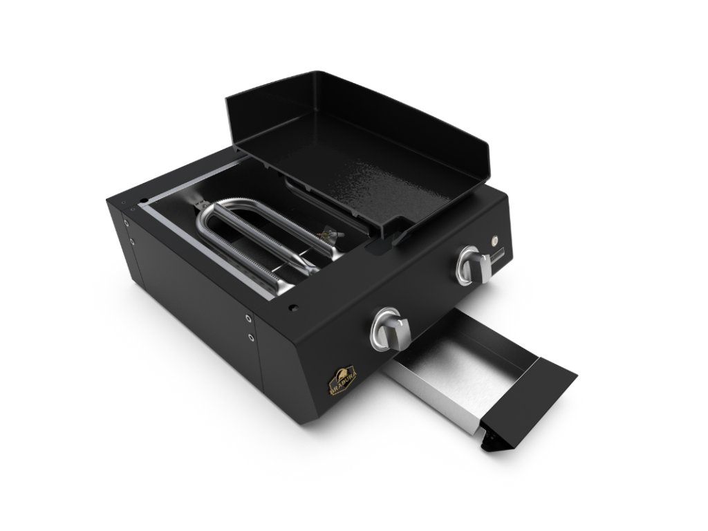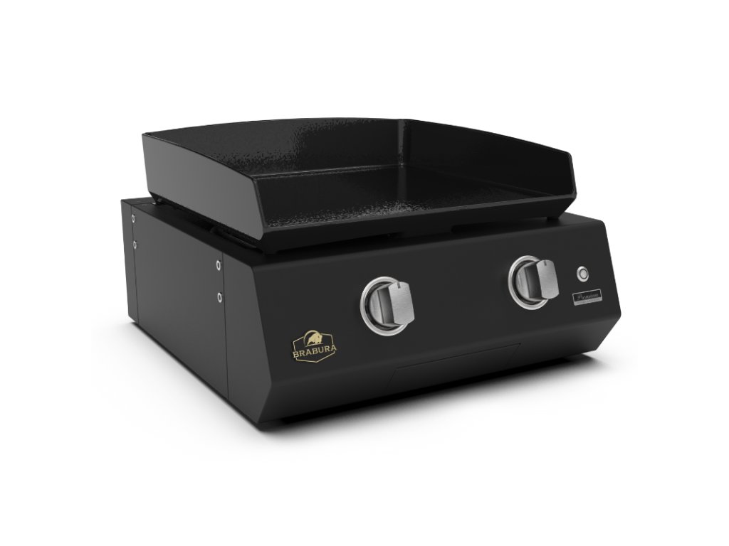 Grilovací deska je vyrobena z prémiové smaltované litiny o tloušťce 8 mm, ideální pro přípravu zeleniny, masa nebo mořských plodů. Tělo planchy je vyrobeno z ultra odolné práškově lakované pozinkované oceli pro vysokou odolnost vůči korozi a dlouhou životnost. 2 výkonné nerezové hořáky s celkovým výkonem 6,4 kW zajišťují rovnoměrné rozložení tepla po celé ploše, mají elektronické zapalování. LED podsvícené ovládací knoflíky zaručuje moderní vzhled a snadnou orientaci – zapnutý hořák svítí oranžově. Provoz na propanbutan nebo možnost přestavby na zemní plyn. Plancha gril je ideální pro doplnění venkovní kuchyně Brabura s podstavnou skříňkou nebo lze použít samostatně jako stolní gril.