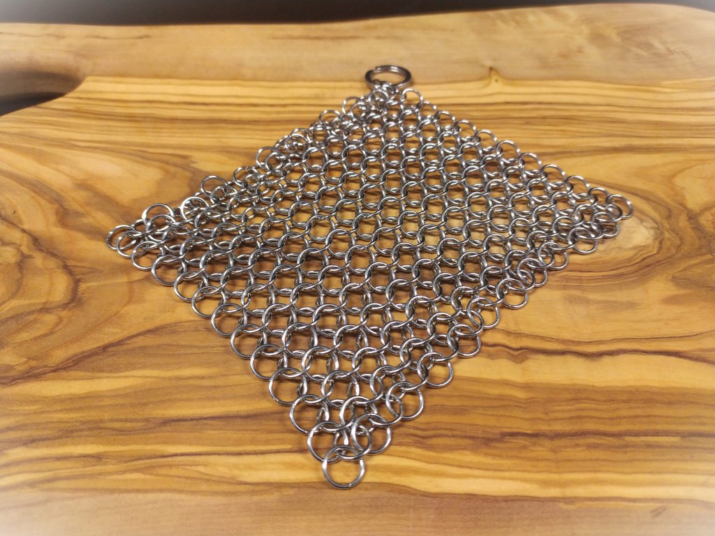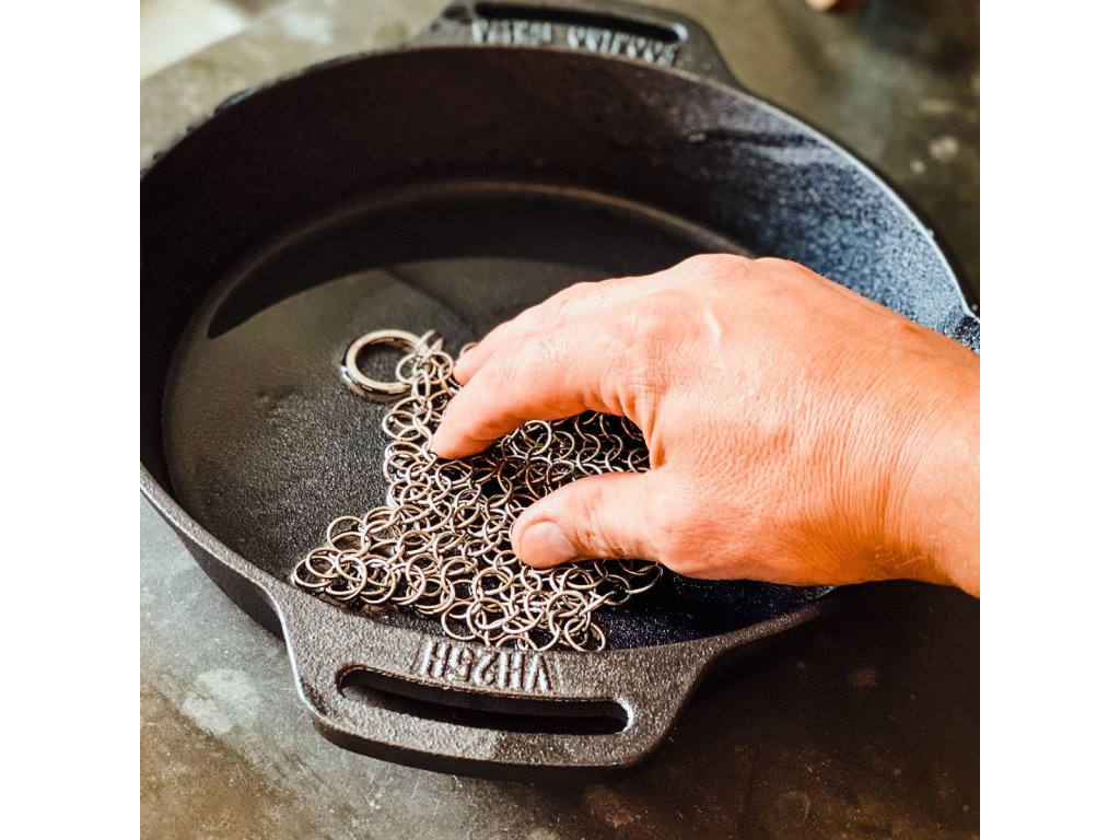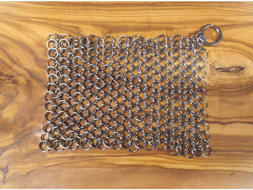 Drátěnka od Valhal Outdoor je praktický nástroj pro čištění vašich litinových pánví. Díky opleteným kroužkům z nerezové oceli snadno odstraníte připečené zbytky jídla, aniž byste poškodili vaše litinové nádobí nebo použili mycí prostředek. Drátěnku lze nesčetněkrát znovu použít a velmi snadno se čistí.