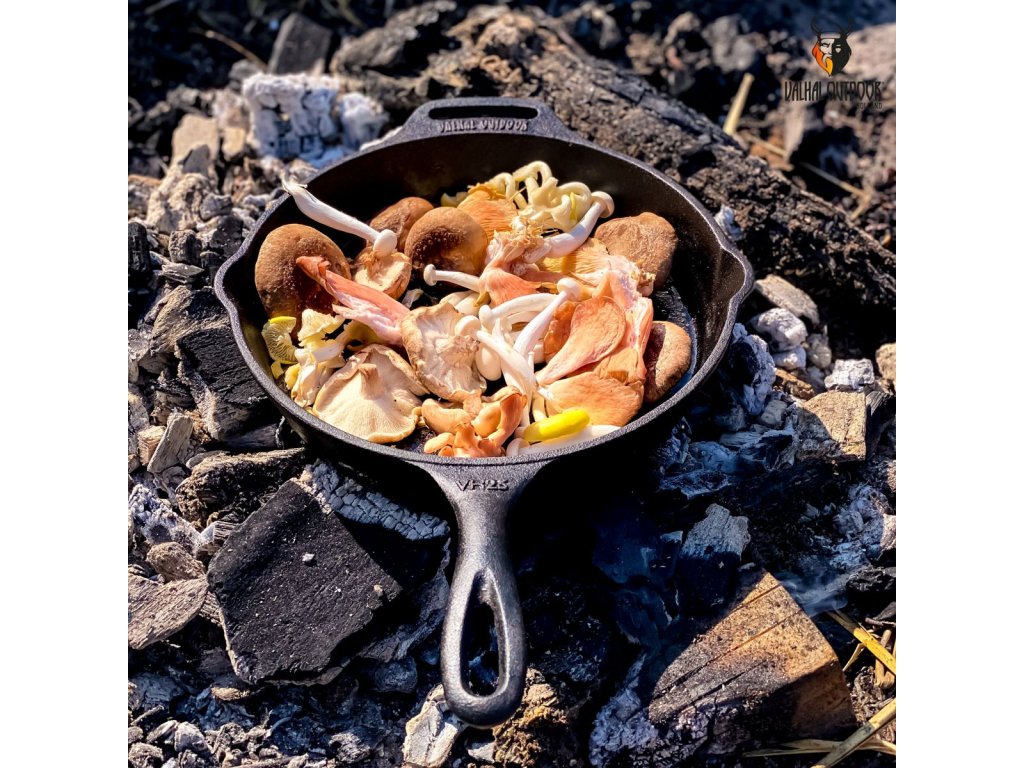 Pánev VH25 od Valhal Outdoor má průměr 25 cm a dlouhé madlo. Pánev má také na obou stranách výlevky, které vám umožní nalévat například omáčky.