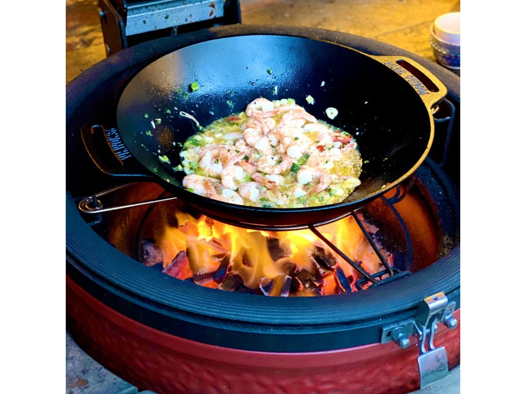 VH.WOK36 je litinový wok o průměru 36 cm, který patří do moderní řady produktů Valhal Outdoor. Litina je materiál proslulý svou schopností perfektně vést a akumulovat teplo. Díky své robustní konstrukci a velikosti se skvěle hodí pro přípravu pokrmů na velkých grilech typu kamado i jiných tepelných zdrojích.