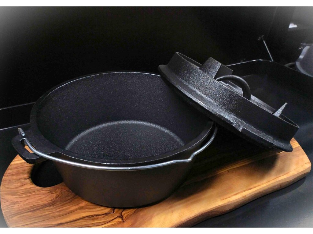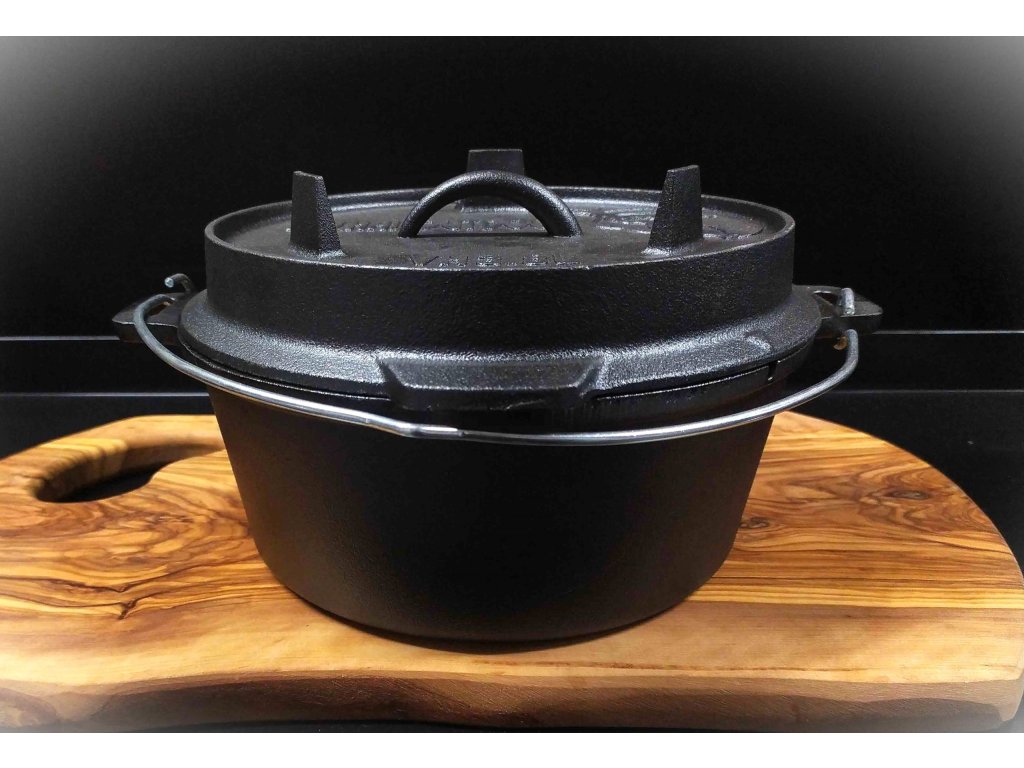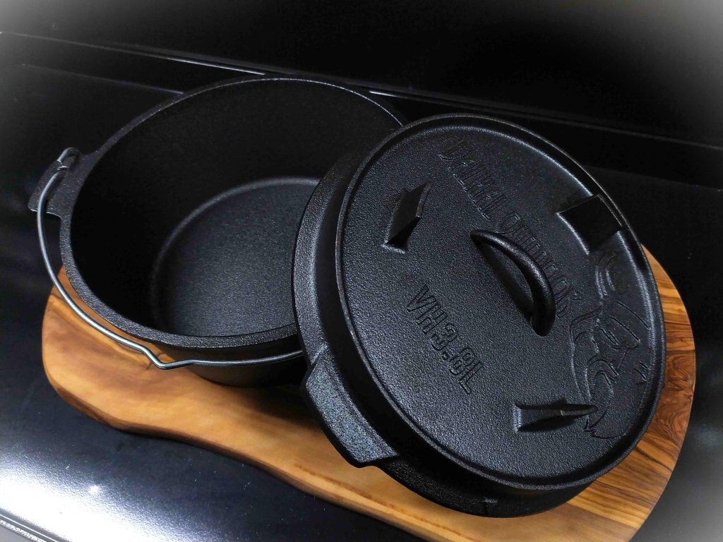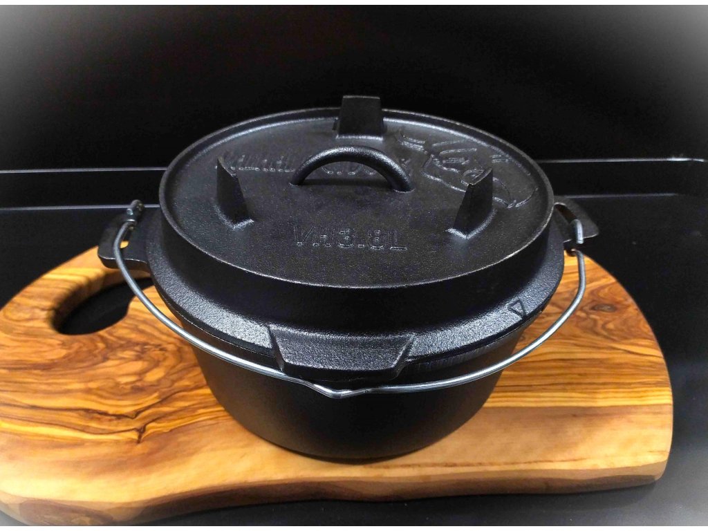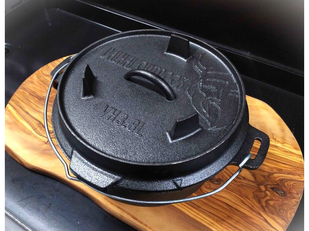 Holandská trouba VH3.8L od značky Valhal Outdoor je vyrobena z kvalitní litiny. Tento materiál perfektně vede a drží teplo, což z něj dělá ideálního pomocníka pro pomalé vaření, pečení i dušení.
