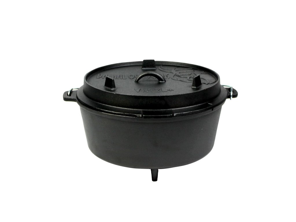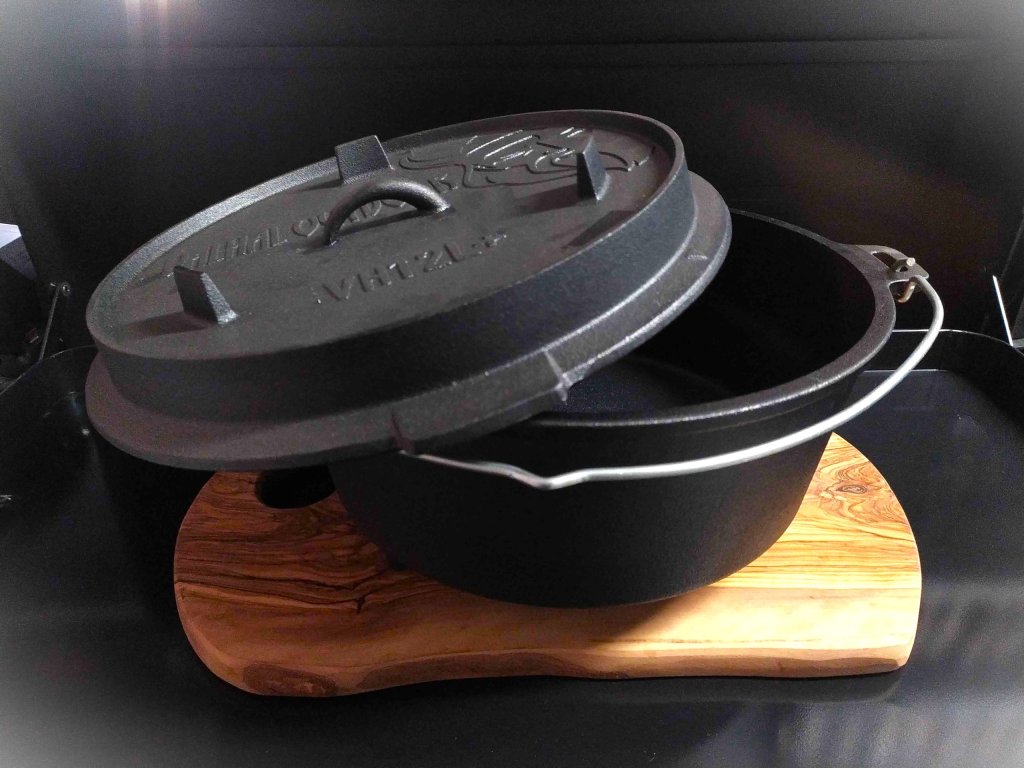 VH12L+ je holandská trouba (Dutch Oven) vybavená nožičkami na spodní straně. Tyto nožičky umožňují umístit hrnec přímo nad zdroj tepla (např. brikety), aniž by docházelo k udušení ohně. To je ideální pro tradiční venkovní vaření s teplem shora i zdola – brikety můžete položit i na víko. Tímto způsobem hrnec funguje podobně jako klasická trouba, ve které upečete chleba nebo připravíte lahodná dušená jídla.