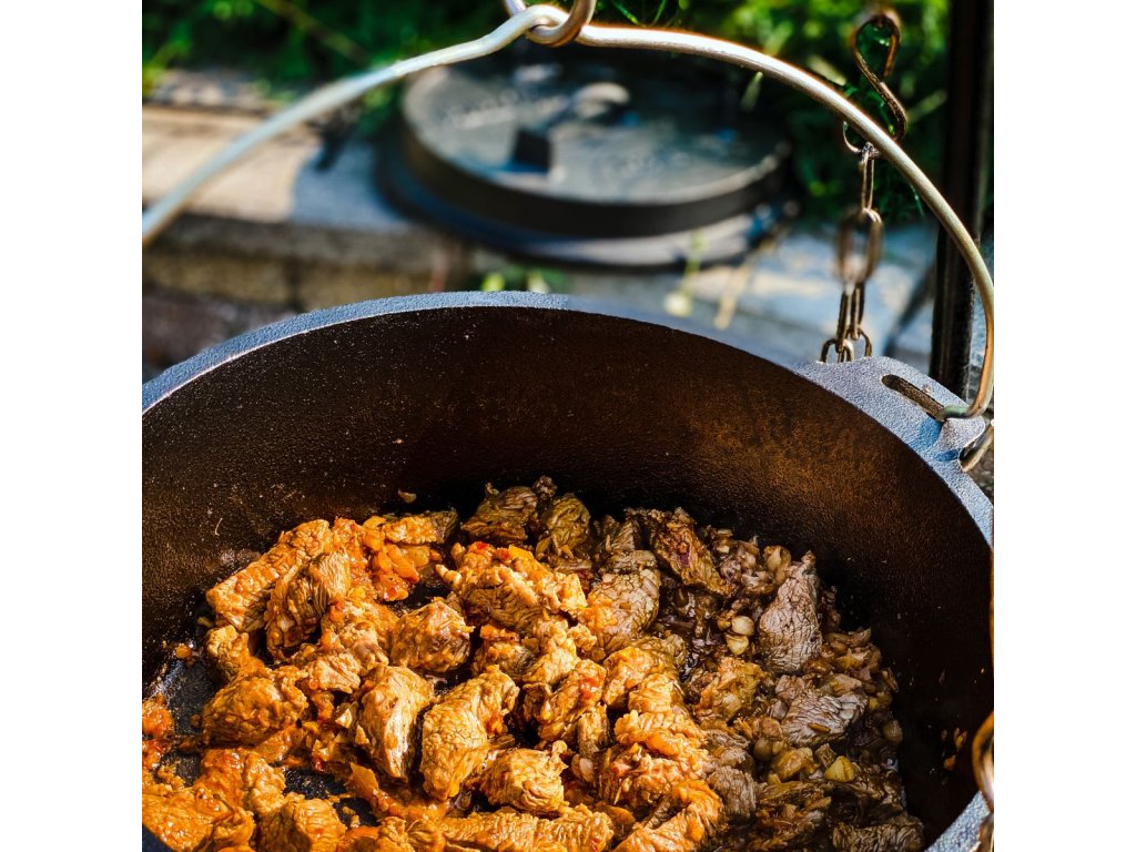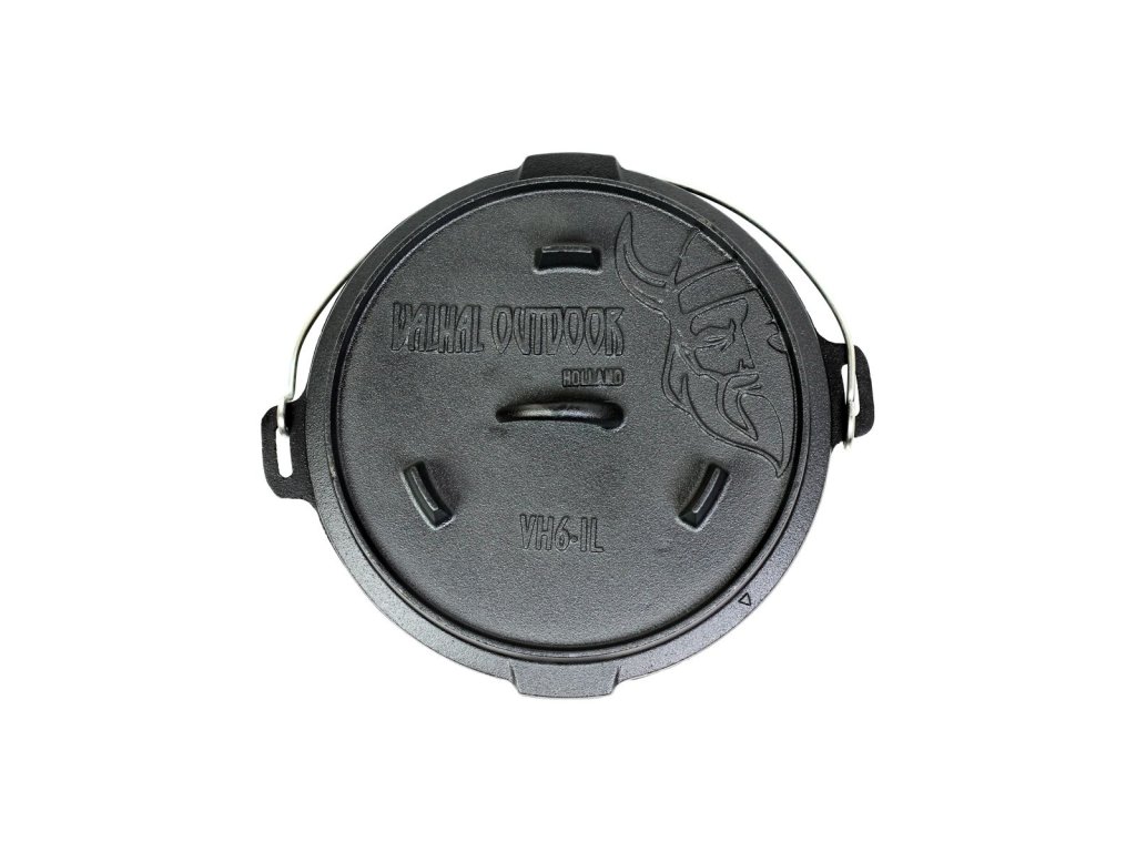 Outdoorový hrnec VH6.1L+ je vyroben z litiny, což je materiál, který výborně vede a drží teplo. VH6.1L+ je holandská trouba (dutch oven) s nožičkami na spodní straně. Nožičky na dně vám umožní umístit jej přímo nad zdroj tepla, aniž by se teplo dusilo. To je ideální, když chcete používat tento litinový hrnec prastarým způsobem s teplem shora i zdola.