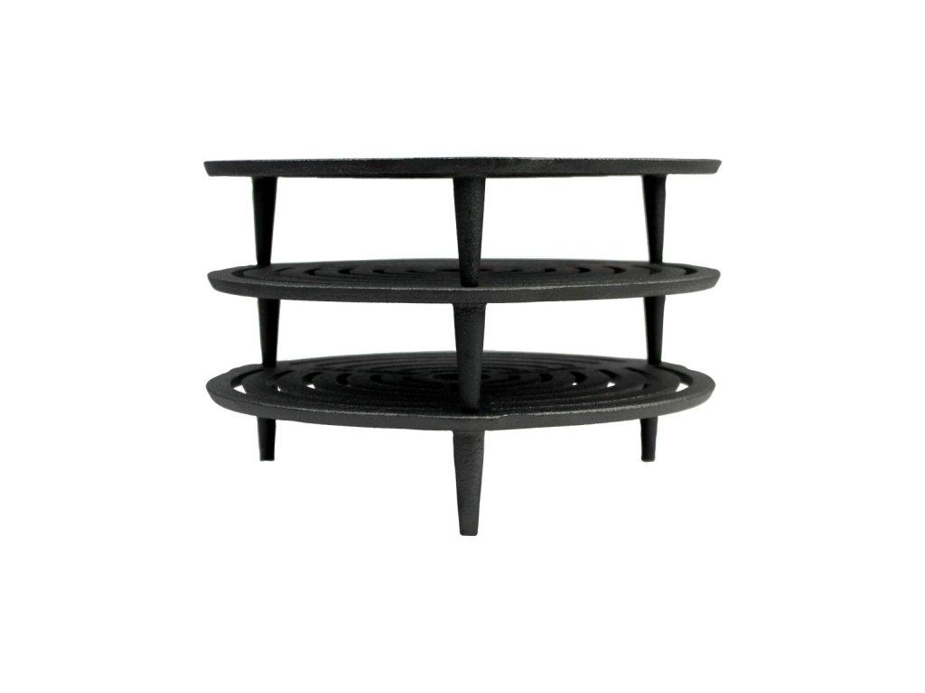 Všestrannost stohovatelného roštu zde nekončí, můžete jej umístit pod Dutch Oven (holandskou troubu) bez nožiček a vytvořit tak stabilní základnu (nožky). Rošt je vyroben z kvalitní litiny, která zajišťuje dlouhou životnost a skvělou tepelnou odolnost.