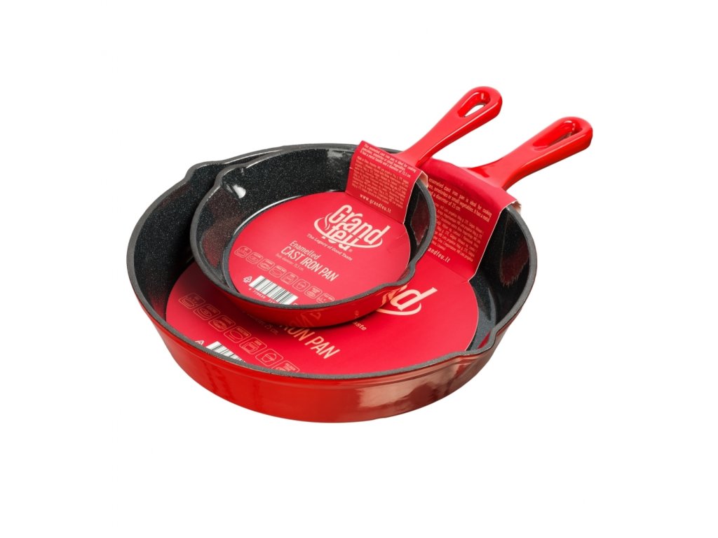 Červená smaltovaná litinová pánev 15,5cm Grand feu