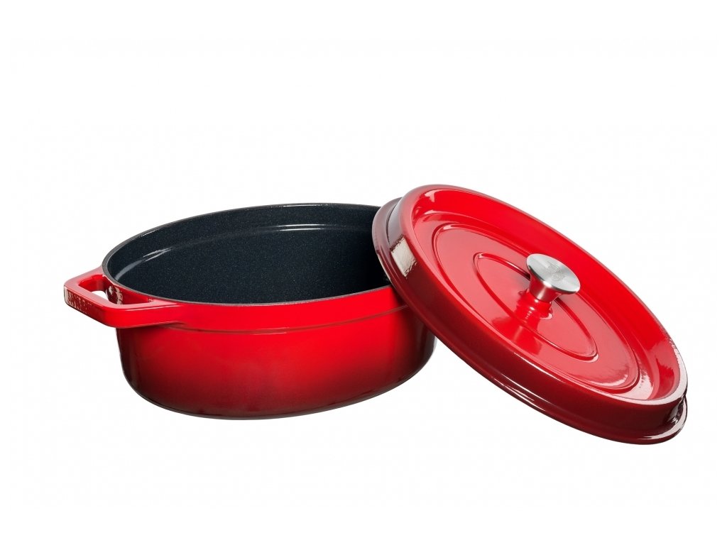 Litinový oválný hrnec 5,6l červený Grand feu