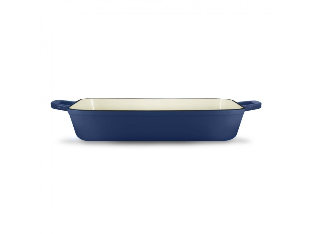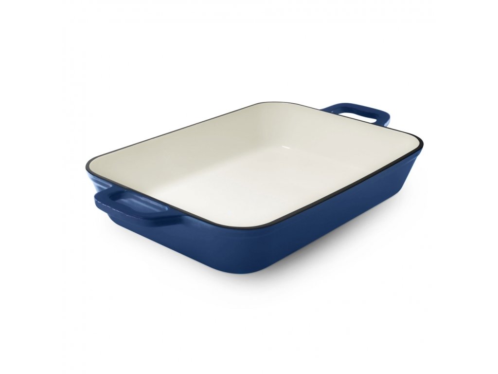 Smaltovaný litinový plech na pečení (33 cm), modrý. Zapékací mísa s poklicí vám umožní vařit sladké i slané pokrmy bez námahy a stresu. Pánev je vhodná pro všechny standardní trouby a grily; po stranách jsou praktické držadla.
