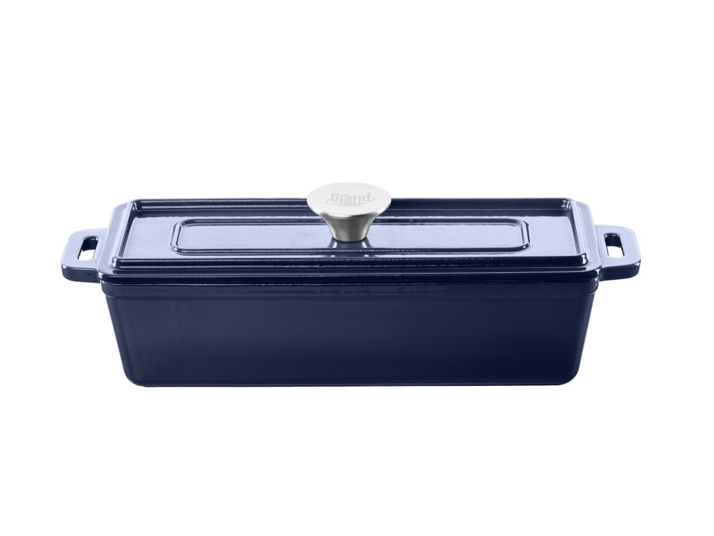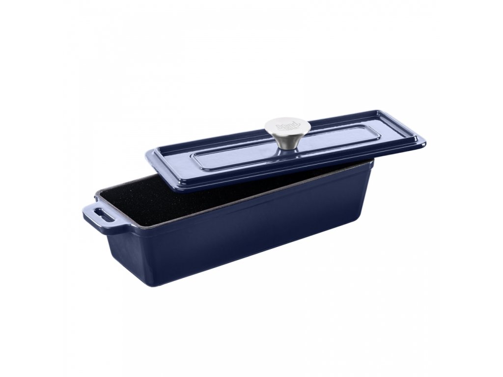 Tradiční obdélníkový smaltovaný litinový pekáč Grand Feu modrý s poklicí umožňuje bez námahy a stresu připravovat sladké i slané pokrmy. Pánev je vhodná pro všechny standardní trouby a grily; po stranách jsou praktické držadla. Pečeme, marinujeme, dusíme – tento pokrm je opravdu všestranný a nepostradatelný pomocník.