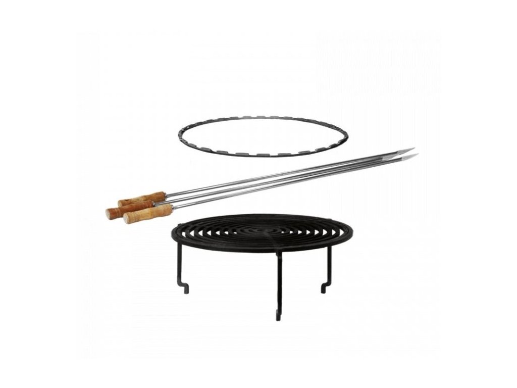 Pro ještě větší všestrannost nabízíme sadu OFYR 100 Grill Accessories Set. Standardní sada obsahuje vyvýšené nožičky 21 cm, grilovací mřížku Grill Round 100, špízový kruh Horizontal Skewers Ring 100 a 3 ks špízových mečů Skewers 85.