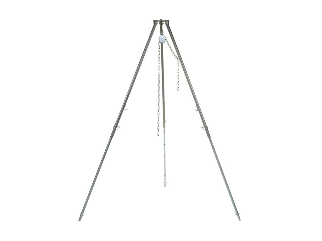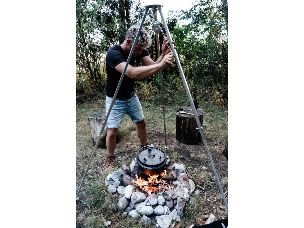 Je vybavena praktickou kladkou nahoře, což vám umožňuje snadno nastavit výšku. Navíc jsou nohy vybaveny dalšími háky pro připevnění řetězů, což vám umožní současně zavěsit grilovací rošt, což zajišťuje všestranný zážitek z venkovního vaření.