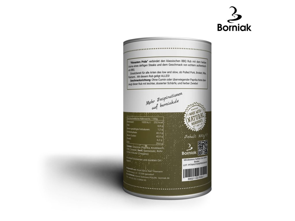 Klasická směs BBQ koření Pitmasters Pride Borniak s jemným nádechem bylinek. Toto koření je opravdu všestranné - vynikající na vepřové maso, hrudí, žebra, pastrami. Je také ideální pro přípravu steaků či kuřecích paliček.