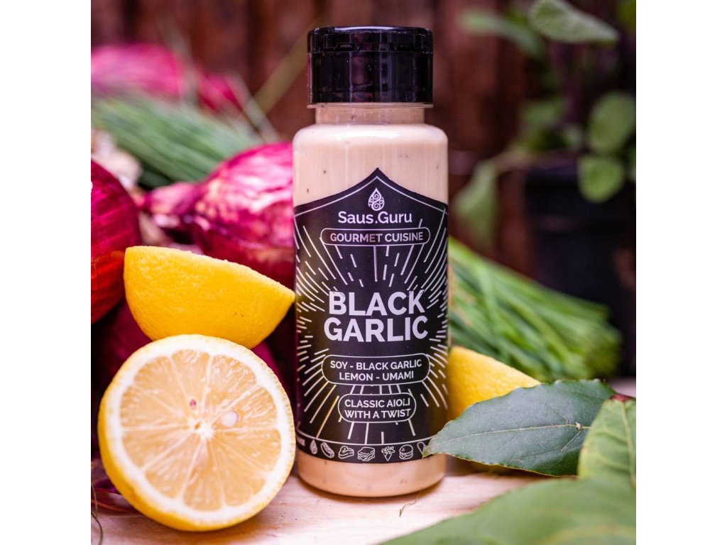 Saus.Guru's Black Garlic Sauce je plná jak bohatých smetanových chutí, tak i svěžích tónů, které okoření širokou škálu jídel, sendvičů, svačin a hranolků.