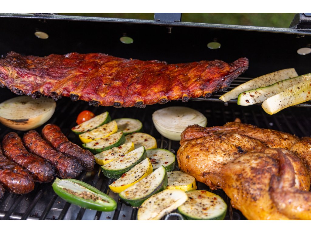 - Dva grily = neomezené možnosti. Uďte pomalu na peletách nebo grilujte rychle na plynu – podle chuti i počasí.