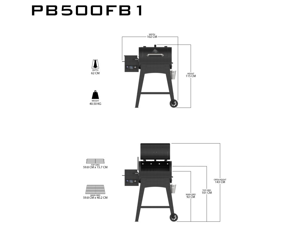 - Prostorná grilovací plocha: S velkorysou grilovací plochou je FB500 ideální pro přípravu pokrmů pro rodinu i přátele.