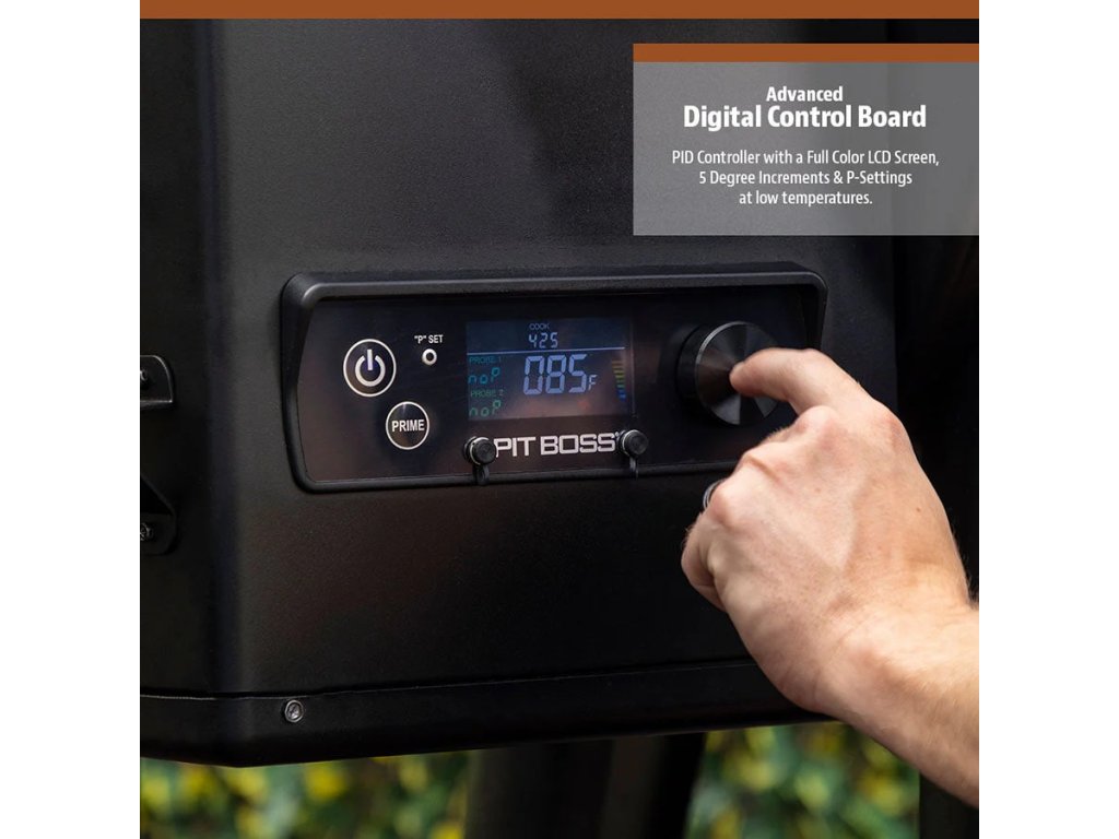 Model PB1000NX má pokročilou PID řídicí desku s nastavením P při nízkých teplotách pro dokonalý kontrolovaný zážitek z vaření. Tato nastavení vám umožňují přizpůsobit přístroj vašemu prostředí nebo zvýšit hustotu kouře. Řídicí deska také nabízí 5stupňové nastavení pro cílové teploty nepřímého vaření v rozmezí od 82 do 260 °C. Nebo můžete posunout páku Flame Broiler™ pro přímé opékání plamenem.