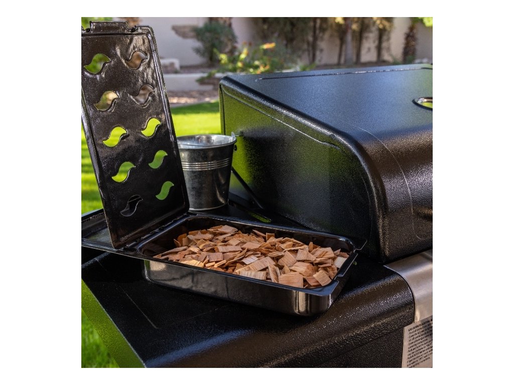 - Obsahuje tři smaltované ocelové rošty a vyjímatelnou misku na tuk.