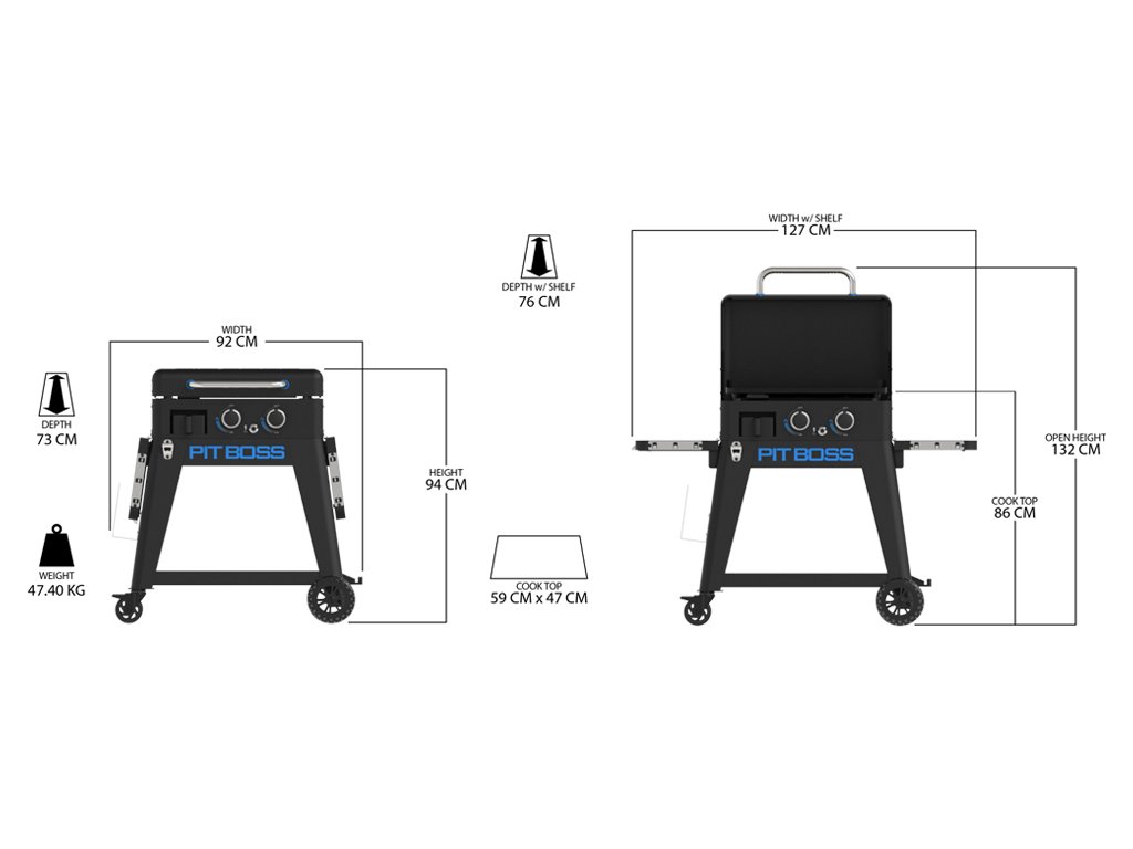 Tato řada grilů je stejně praktická, jako je vynalézavá a představuje nejvšestrannější nabídku produktů značky Pit Boss. Upozornění: Hadice s regulátorem na připojení k plynové lahvi není součástí balení.