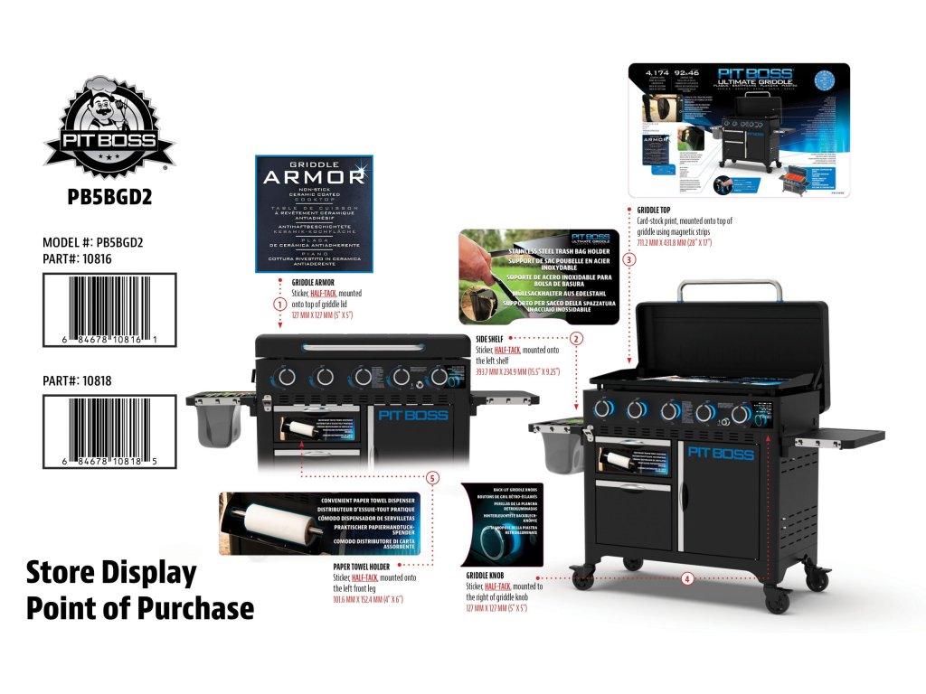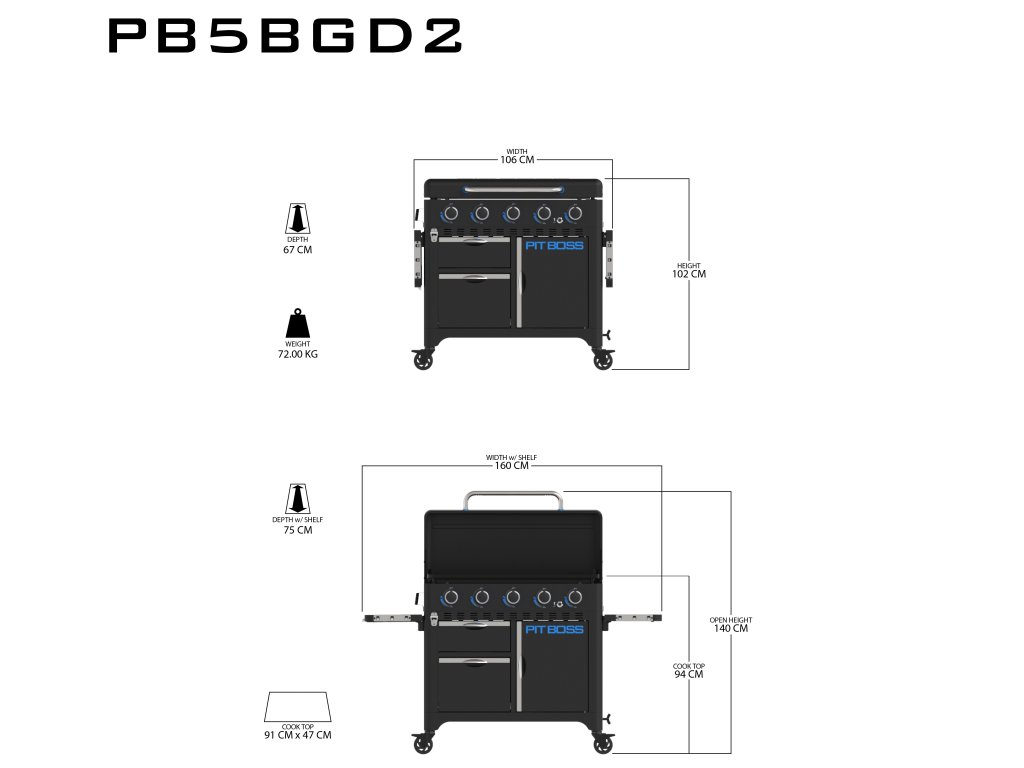 Ultimate Griddle je vybaven robustní topnou platformou s 5 hořáky, díky čemuž je nejvýkonnějším grilem, který Pit Boss dosud vytvořil. Tento gril nabízí 0,4174 m² varné plochy a dokonale se hodí pro jakékoli vaše potřeby při vaření.
