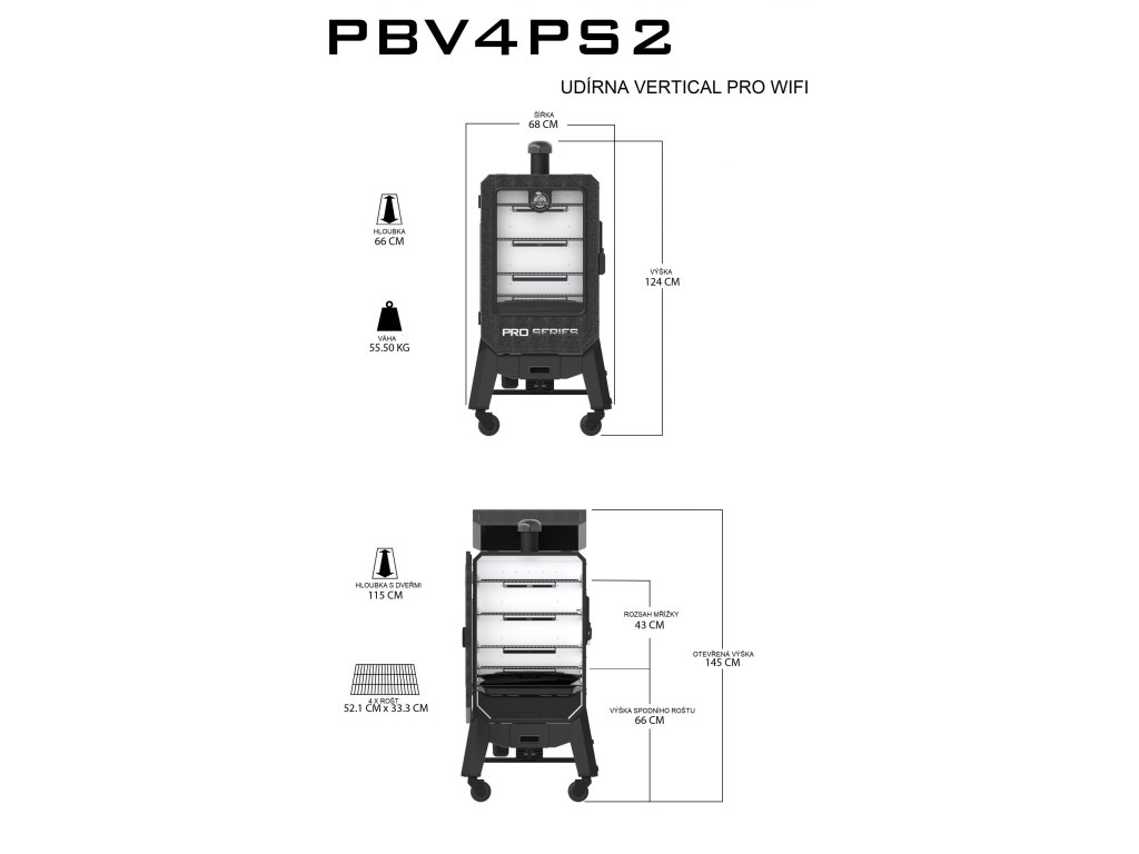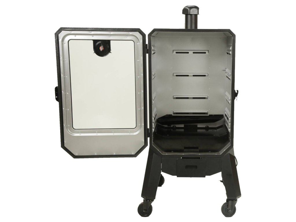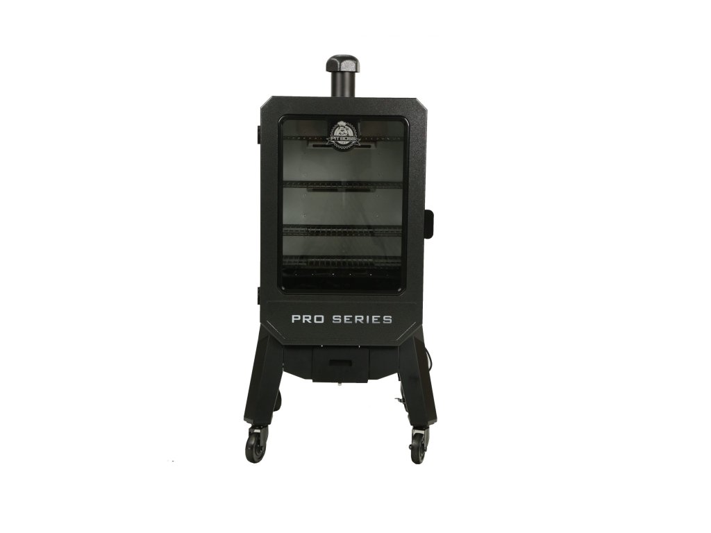 Elektrická udírna na pelety Pit Boss Vertical PRO WiFi s digitálním ovládáním a s prosklenými dvířky. Udírnu propojíte se svým chytrým telefonem pomocí Bluetooth nebo WiFi s aplikací Smoke IT.