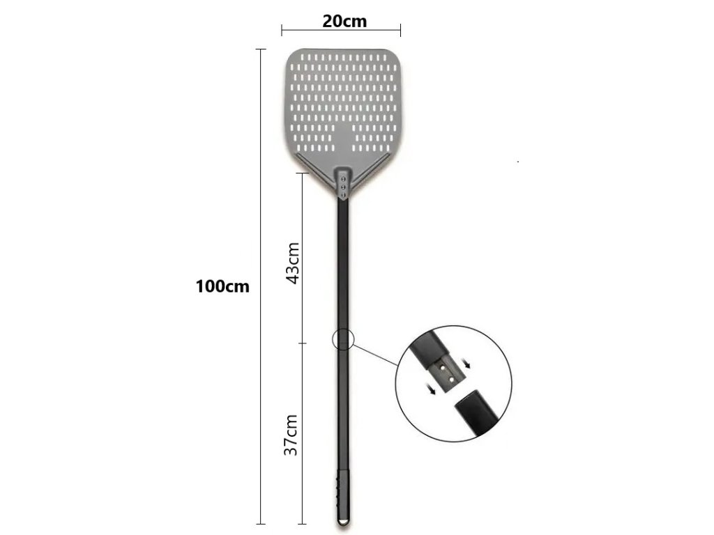 Vyrobeno z vysoce pevného a odolného eloxovaného hliníku, lopata je pevná a odolná proti korozi. Pizza lopata je lehká, skladná a snadno se používá i čistí.