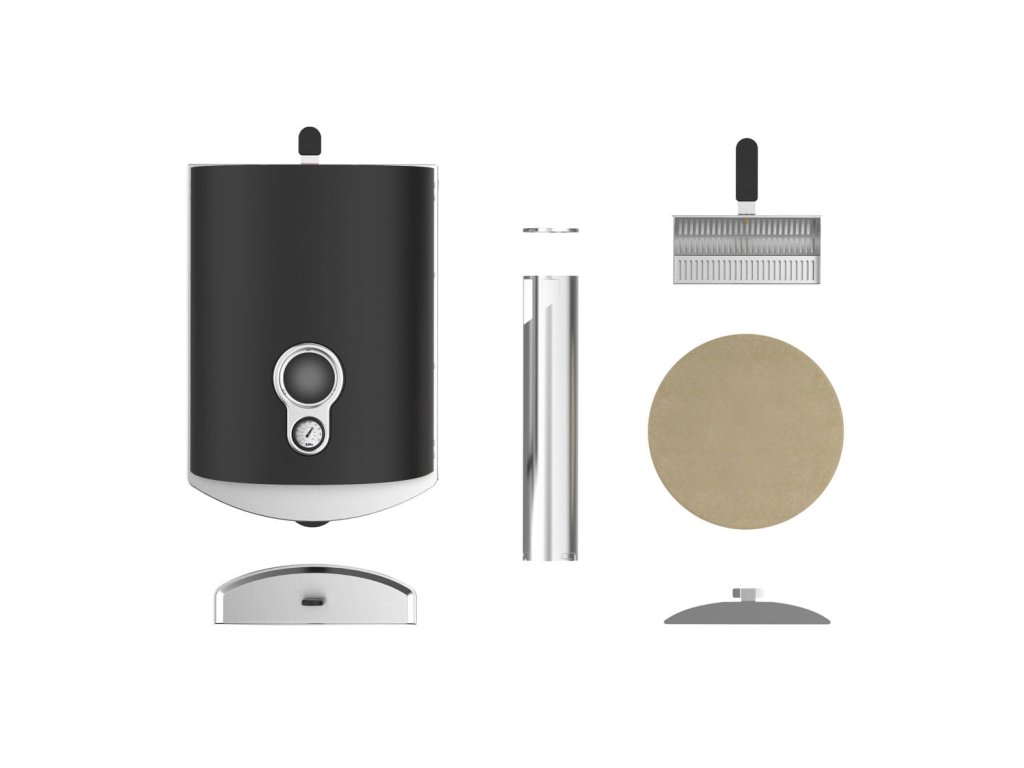 - Teploměr – Vždy vidíte teplotu uvnitř trouby. Nechte ji rozehřát 15 minut, abyste dosáhli ideální teploty vaření mezi 380 °C a 420 °C.