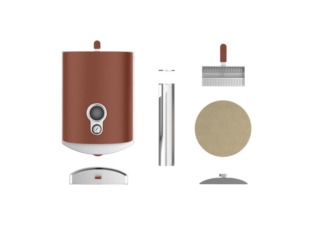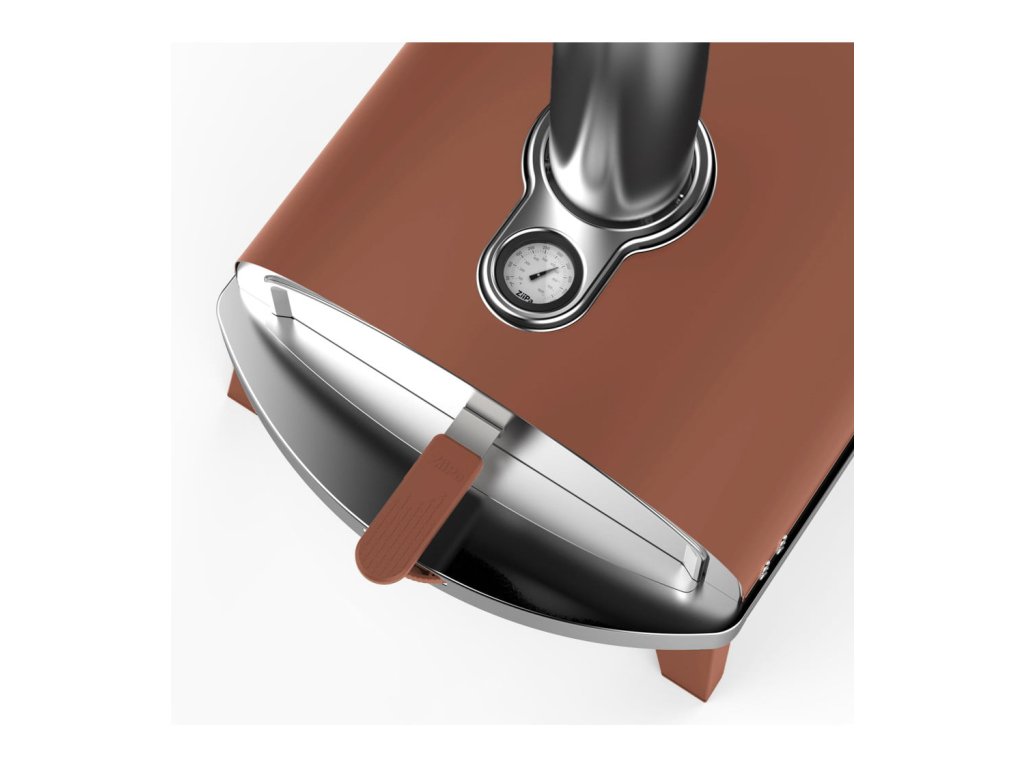 - Teploměr – Vždy vidíte teplotu uvnitř trouby. Nechte ji rozehřát 15 minut, abyste dosáhli ideální teploty vaření mezi 380 °C a 420 °C.
