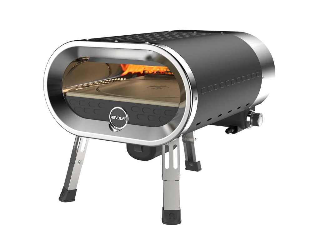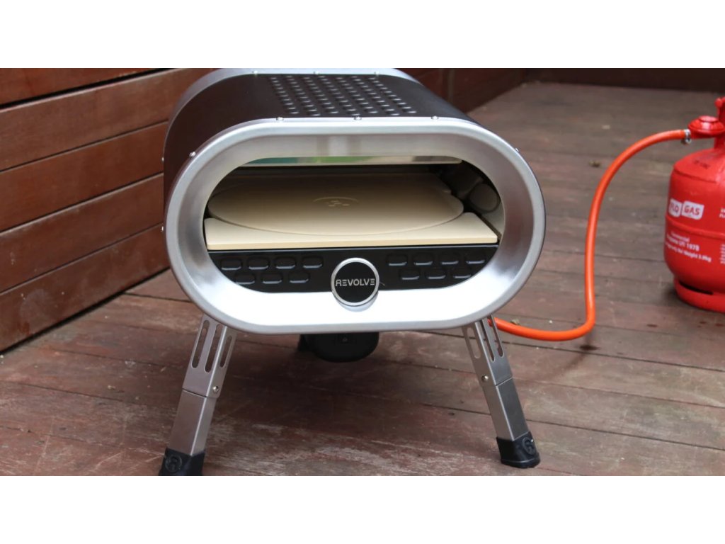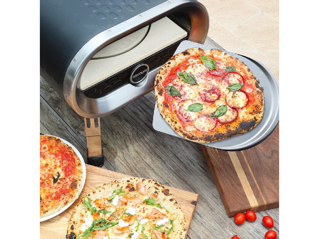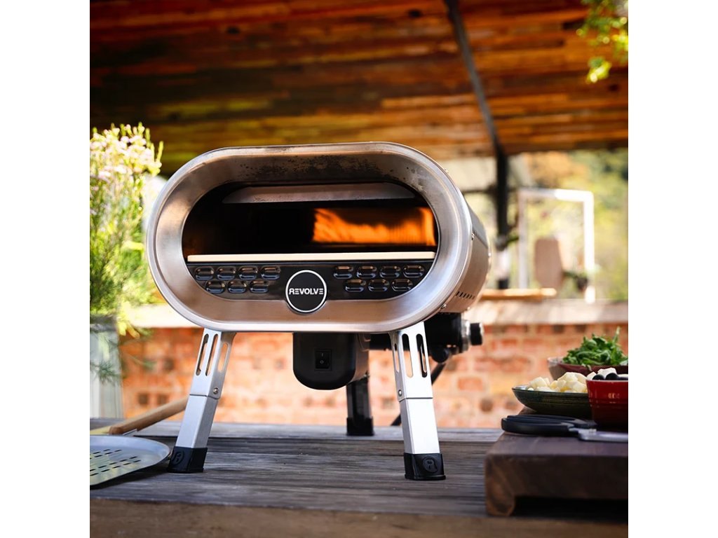 Revolve Pizza pec je přenosná venkovní pec na pizzu. Vyznačuje se inovativním otáčejícím se kamenem na pizzu, který pokaždé připraví dokonalou pizzu. S nastavitelným ohřevem můžete vařit různé pokrmy, včetně oblíbené grilované zeleniny, pečených dezertů, masa a mořských plodů. Trouba se zahřeje až na 500 °C a teplo je rovnoměrně rozloženo po celém pečícím povrchu, což znamená, že pokaždé upečete perfektní pizzu.