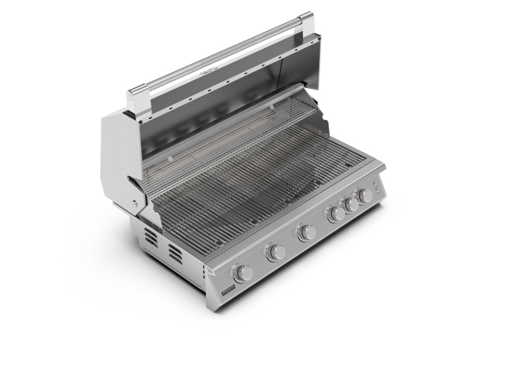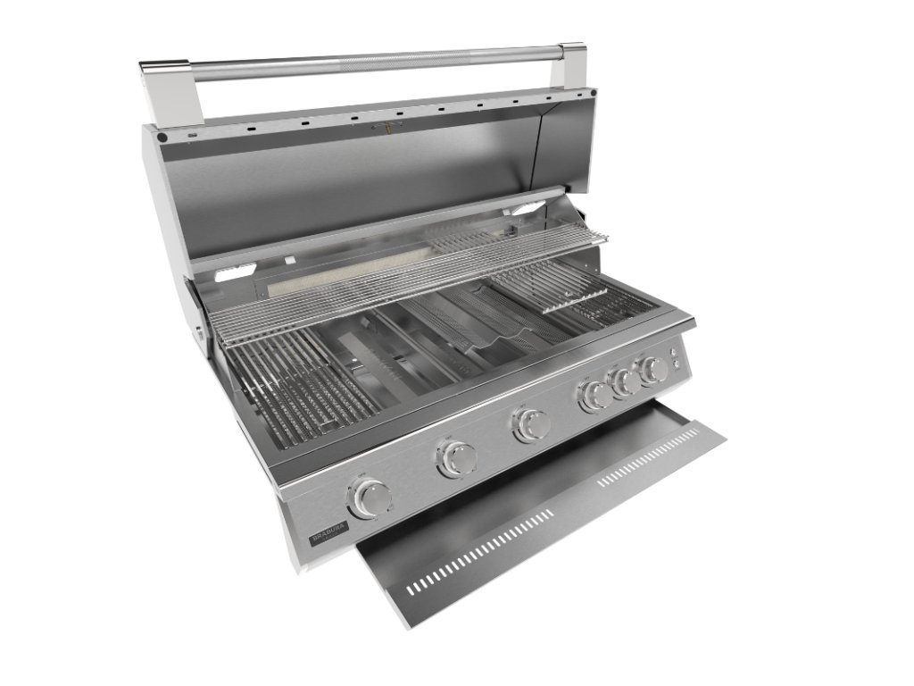 Gril je vyroben z nerezové oceli s odolným práškovým nástřikem, víko osazeno teploměrem a nerezovým madlem. Rošt je z masivní oceli, průměr 10mm, s velkou grilovací plochou 4370 cm² s rozměry 95x46 cm, dostačující pro 15 - 20 osob. 5 masivních hořáků z lité nerezové oceli s velkým výkonem 3,81 kW, celkem 19,05 kW zaručí velký žár, zapalování hořáků je piezoelektrické. Keramický infračervený hořák umístěný v zadní stěně grilu se používá při rožnění drůbeže a rolád za pomoci otočného rožně s elektrickým motorkem, výkon keramického hořáku je 3,81 kW.