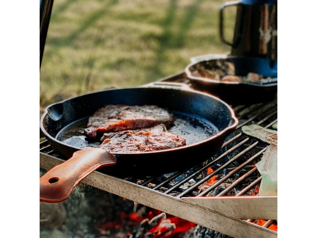 Litina je materiál, který velmi dobře udržuje teplo, a proto se může velmi zahřívat. Valhal Outdoor vyvinul VH.SLEEVE, aby bylo vaření na vašich litinových pánvích s rukojetí o něco jednodušší, aniž by to ubralo na jeho robustním charakteru. Hodí se na pánve Valhal Outdoor s rukojetí, ale také na jakoukoli rukojeť pánve s podobnými rozměry.