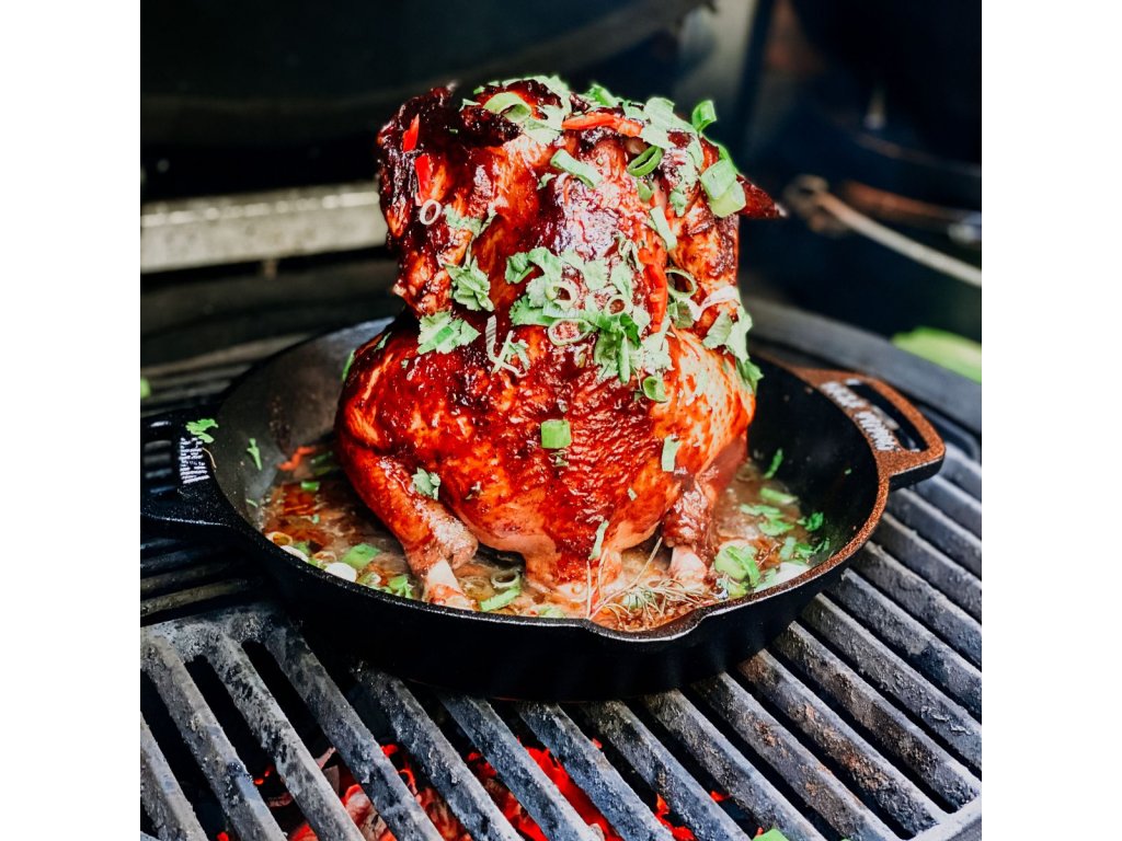 Litinový stojan na kuře je vynikajícím pomocníkem, pokud chcete mít rovnoměrně propečené a křupavé kuře. Do stojanu můžete nalít také trochu piva pro ještě šťavnatější a chutnější výsledek.