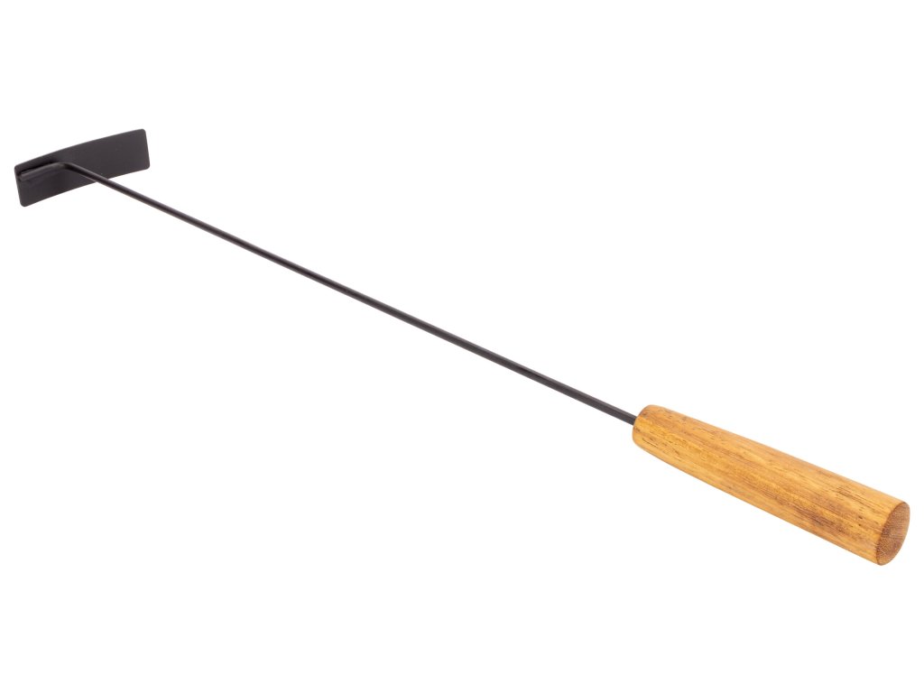 - Pevný úchop – zajišťuje jistotu při přikládání i přehazování dřeva nebo uhlí