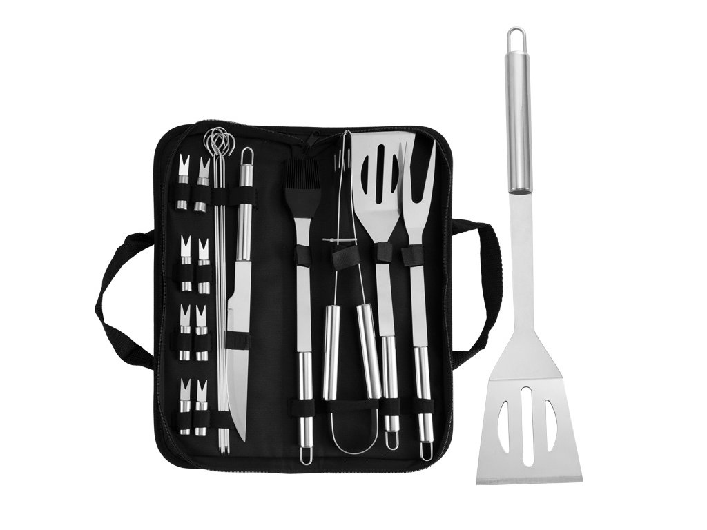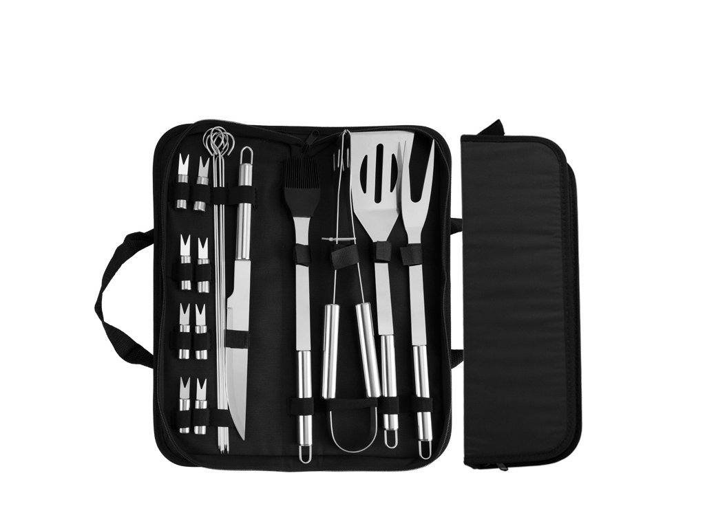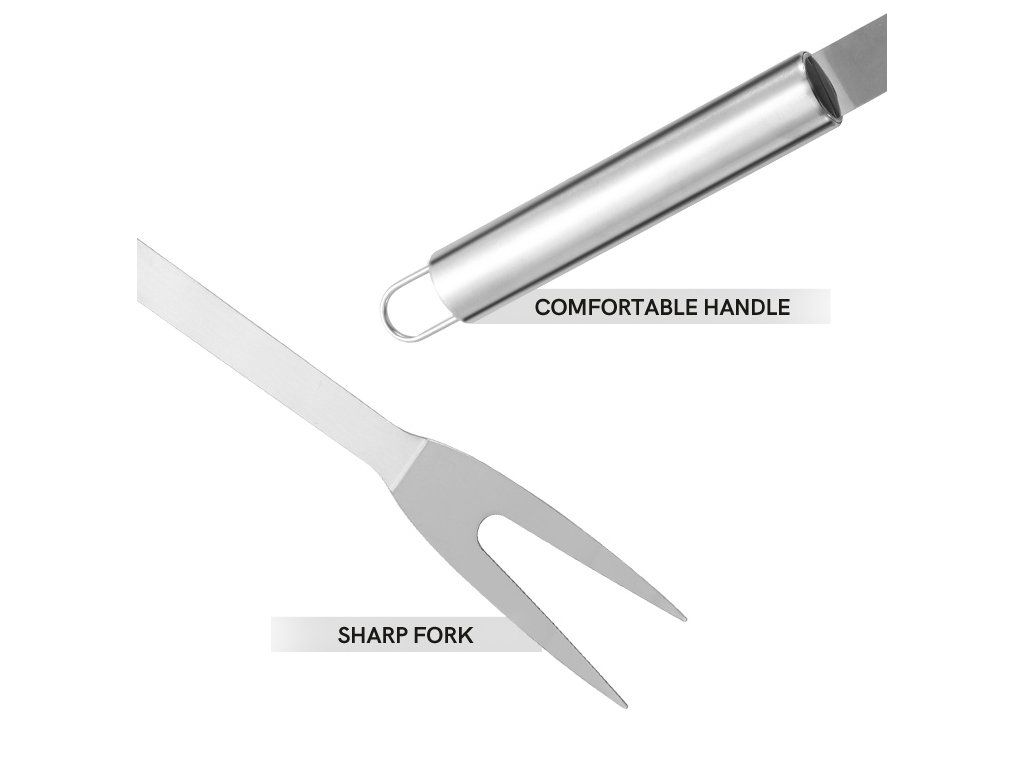 Tato sada grilovacího náčiní obsahuje vše, co potřebujete pro úspěšné grilování venku. Nerezová ocel SS 420 poskytuje odolnost a dlouhou životnost nástrojů, zatímco taška na přenášení usnadňuje jejich přenášení a uskladnění.