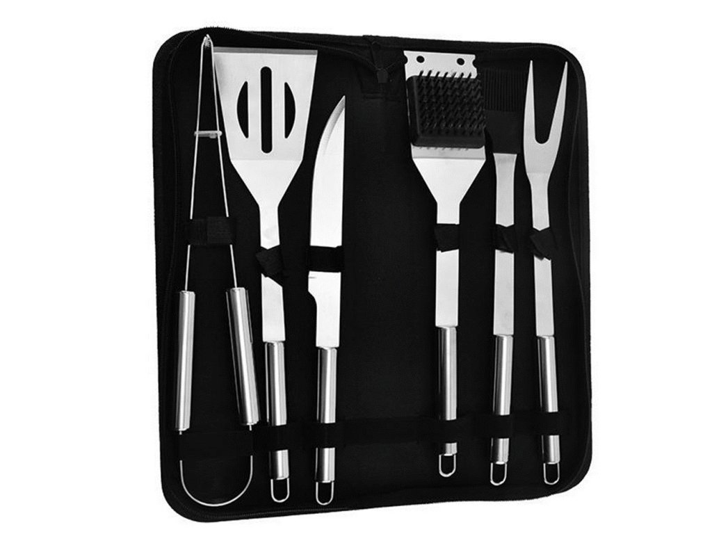 Tato sada grilovacího náčiní obsahuje vše, co potřebujete pro úspěšné grilování venku. Všechny nástroje jsou vyrobeny z kvalitní nerezové oceli SS 420, která zajišťuje odolnost a dlouhou životnost. Špachtle, vidlice, kleště, nůž, mašlovačka a kartáč na čištění BBQ vám usnadní manipulaci s jídlem na grilu a čištění grilovací plochy. Sada je dodávána s praktickou taškou na přenášení, což usnadňuje přenášení náčiní a jeho skladování.