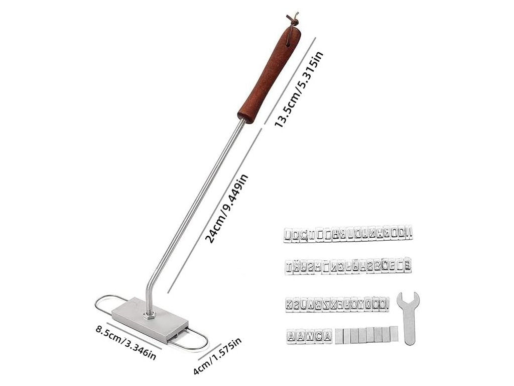 Tato vysoce kvalitní grilovací značkovačka obsahuje 55 písmen a mezer. Obsahuje všechna písmena abecedy a další písmena a mezery pro vytvoření vlastních nápisů.