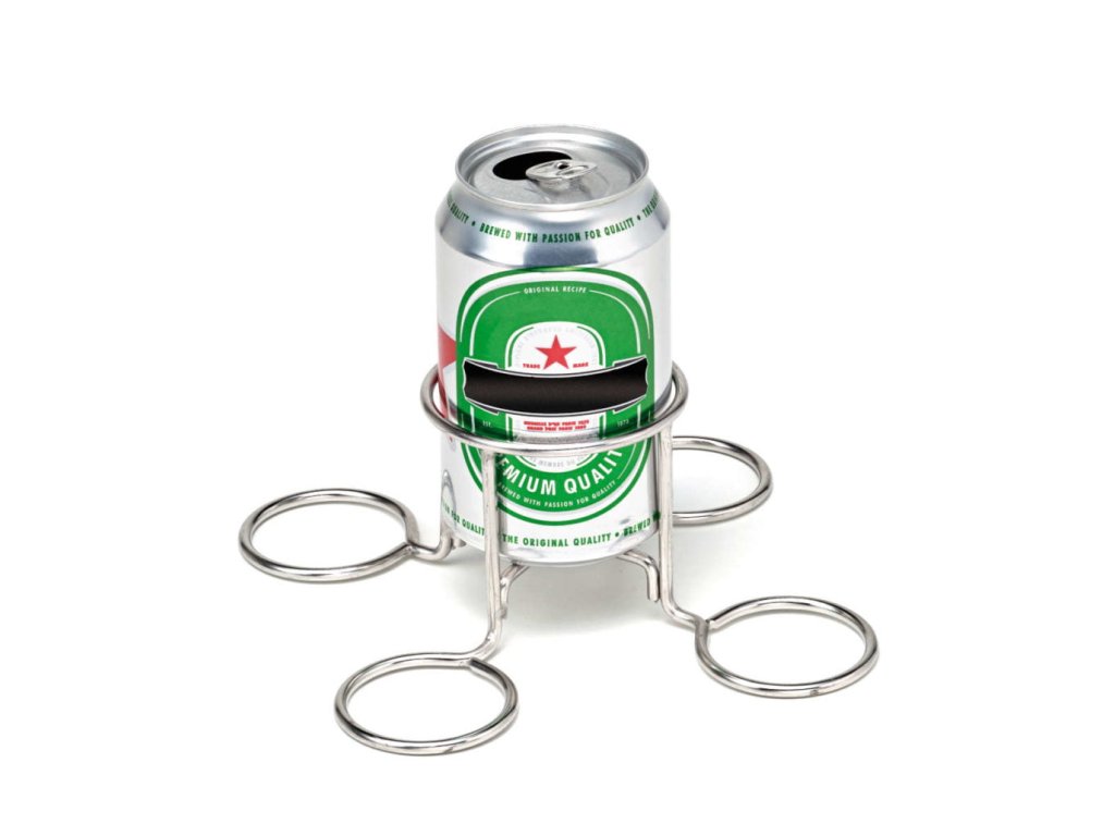 Držák na drůbež z nerezové oceli s místem k umístění plechovky piva či coca coly.