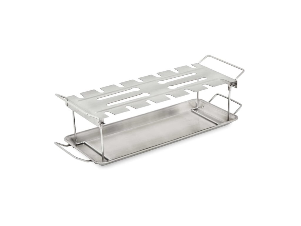 Grilované kuřecí paličky či křidélka s křupavou kůrčičkou ze všech stran. Takové dobroty vám pomůže dosáhnout dvoudílný grilovací držák skládající se z držáku a odkapávací misky.