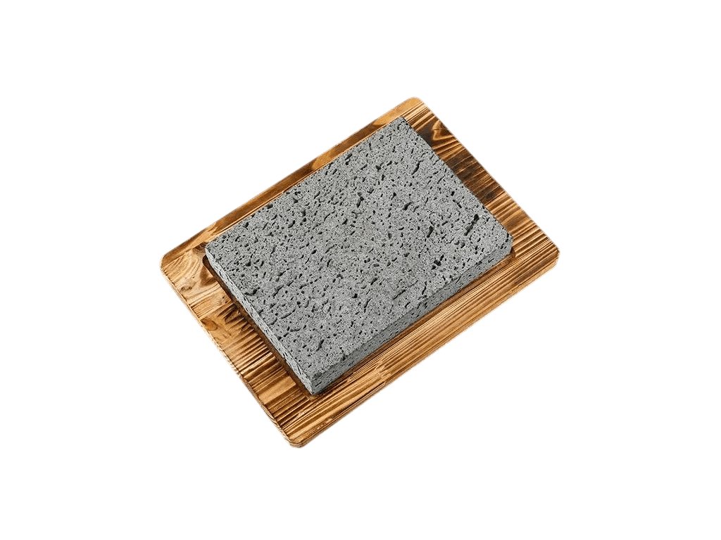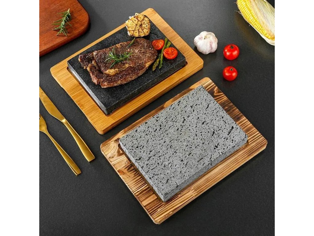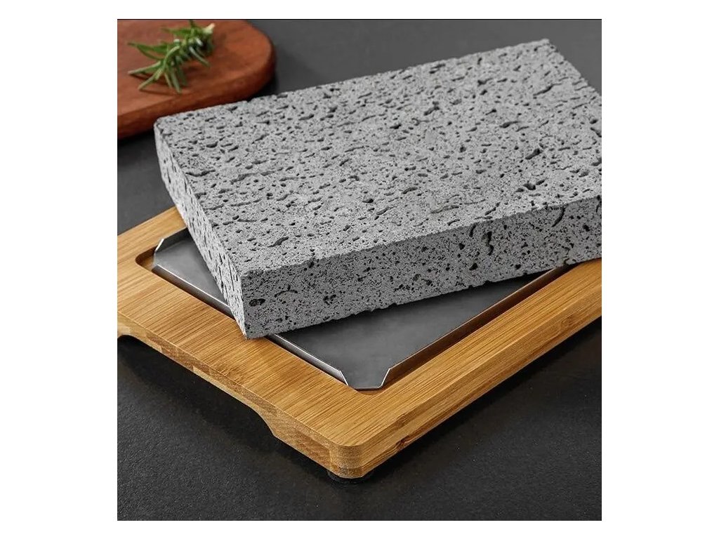 - Dřevěné prkénko: S rozměry 28 × 20 × 2,3 cm slouží jako stabilní základna pro kámen a zároveň jako estetický prvek při servírování.