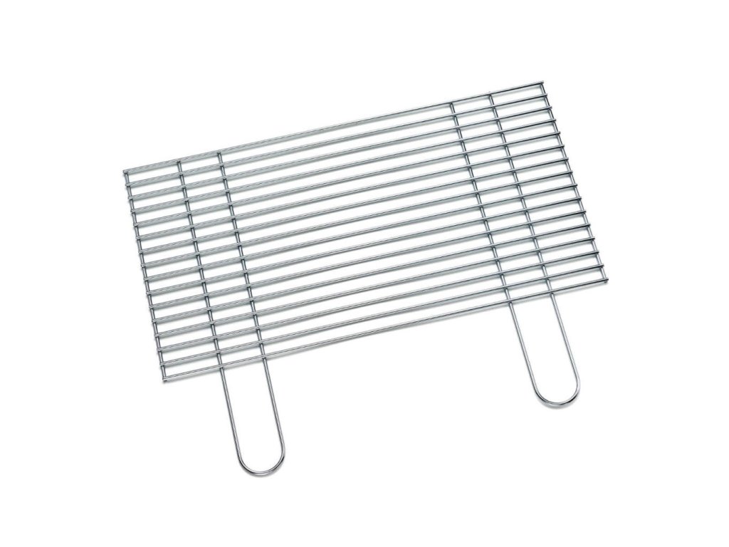 Čtvercový gril vyrobený z chromované oceli. Tloušťka tyče 4,8 mm. Vzdálenost mezi grilovacími tyčemi cca 15 mm.
