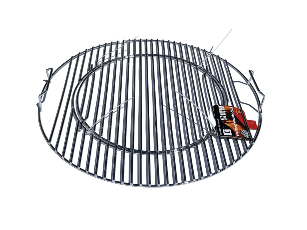Kulatý grilovací rošt BBQ system je vyroben z kvalitní chromované oceli. Je navržen speciálně pro kulaté grily s celkovým průměrem 47 cm, přičemž samotný průměr roštu je 44 cm.