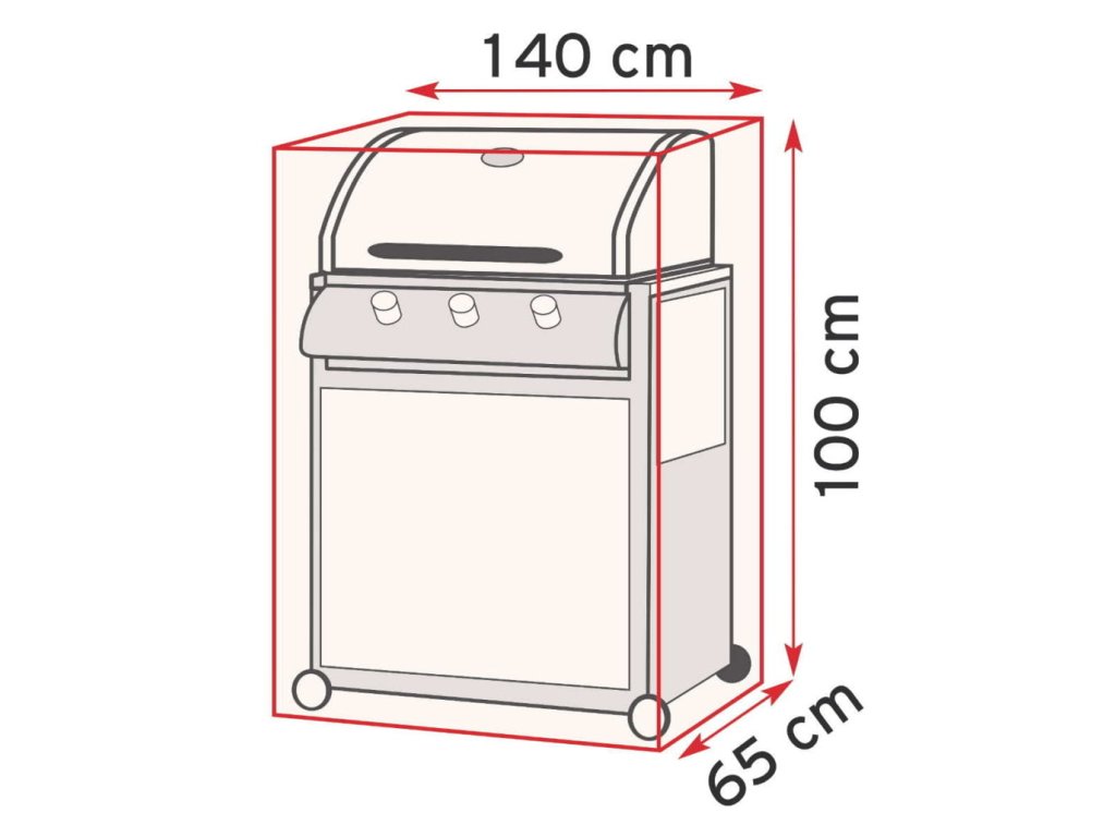 Ochranný kryt proti povětrnostním vlivům pro obdélníkové grily. Vyrobeno z odolné polyesterové tkaniny potažené polyethylenem. Stahovací systém se zarážkou šňůry všitou do lemu.